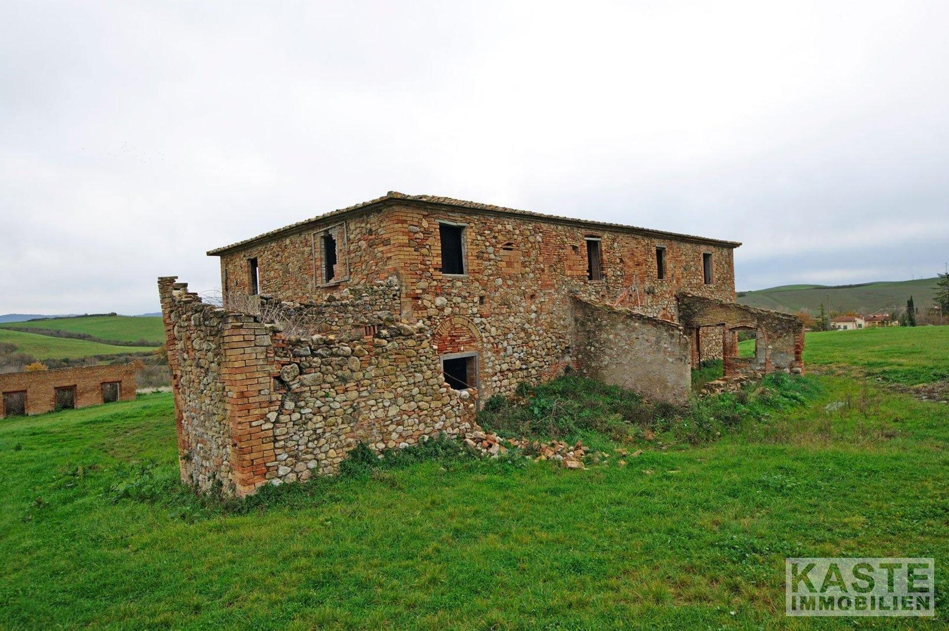 Wunderschönes charakteristisches Landhaus im Ortsteil Lajatico in Italien. Das Anwesen besteht aus 44.000 qm Land, das ein 500 qm großes Haupthaus umgibt, plus 2 Nebengebäude von 50 und 20 qm. Das Haupthaus ist restaurierungsbedürftig, aber es gibt viel wiederzuverwenden, wie die Böden und die originalen Decken, die nach einer guten Restaurierung die schöne Atmosphäre im Haus erhalten. Die alten Ställe können heute als große Wohnräume mit einem großen offenen Raum mit den originalen Gewölbedecken wiederverwendet werden. Und die originale Tränke kann zu schönen Sitzgelegenheiten werden. Das Äußere des Hauses ist in gutem Zustand und außerdem gibt es 2 Nebengebäude, die umgebaut werden können. Es ist möglich, einen Swimmingpool zu bauen.