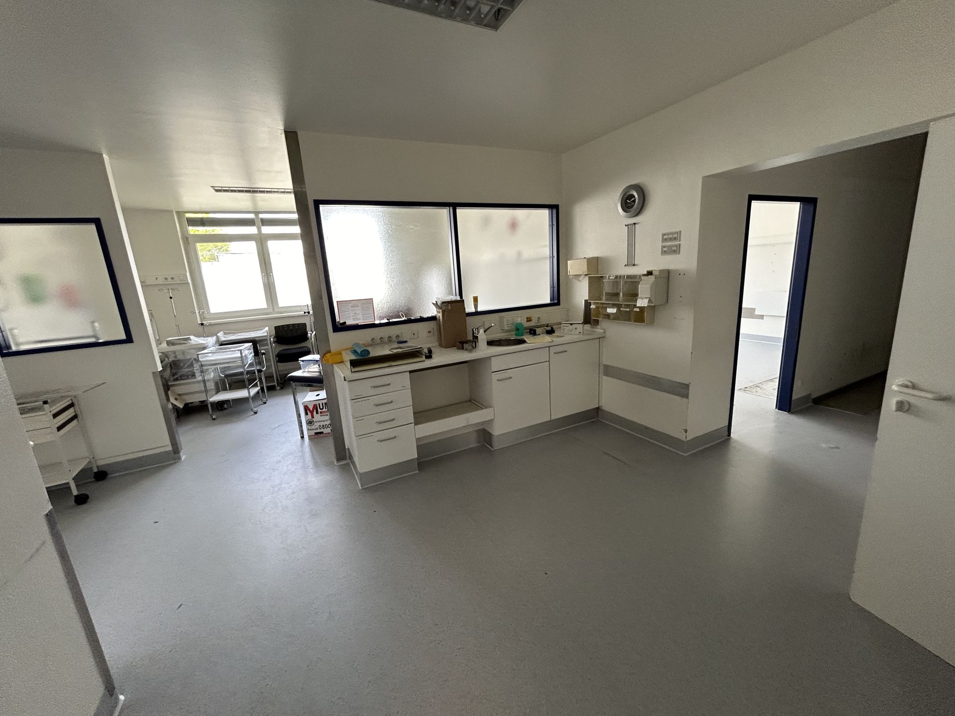 - EG Anbau: ca. 420 m² (2 Eingänge; daher leicht teilbar; OP-Räume; teilweise unterkellert) - EG Südost: ca. 150 m² (zurzeit 4-5 Räume) - 2. OG: ca. 278 m² (zurzeit 12 Räume + großzügiger Wartebereich + Sanitär-/Lagerräume) - 3. OG: ca. 115 m² (zurzeit 6 Räume + großzügiger Wartebereich + Sanitär-/Lagerräume)