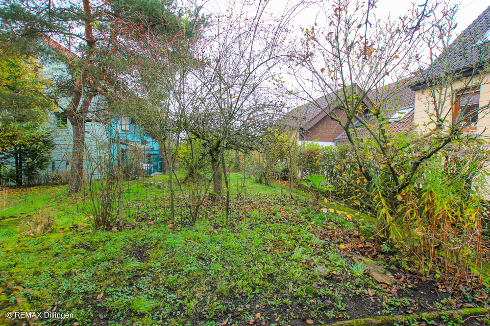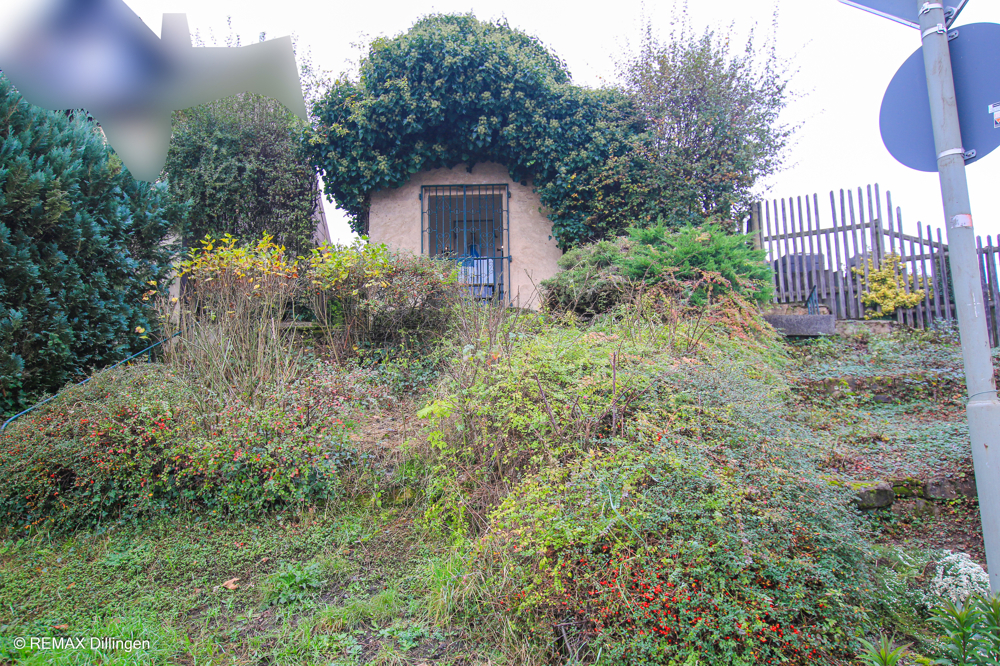 Die Grünflächen vor und neben dem Haus sind hübsch eingefriedet. Im hinteren Grundstücksbereich befindet sich ein separates Gebäude und eine Blechgarage, also Platz für allerlei Geräte. Das Grundstück besitzt Grünflächen, Freiflächen und alten Baumbestand und führt auf der linken Seite weiter bis zu einer kleinen Kapelle.