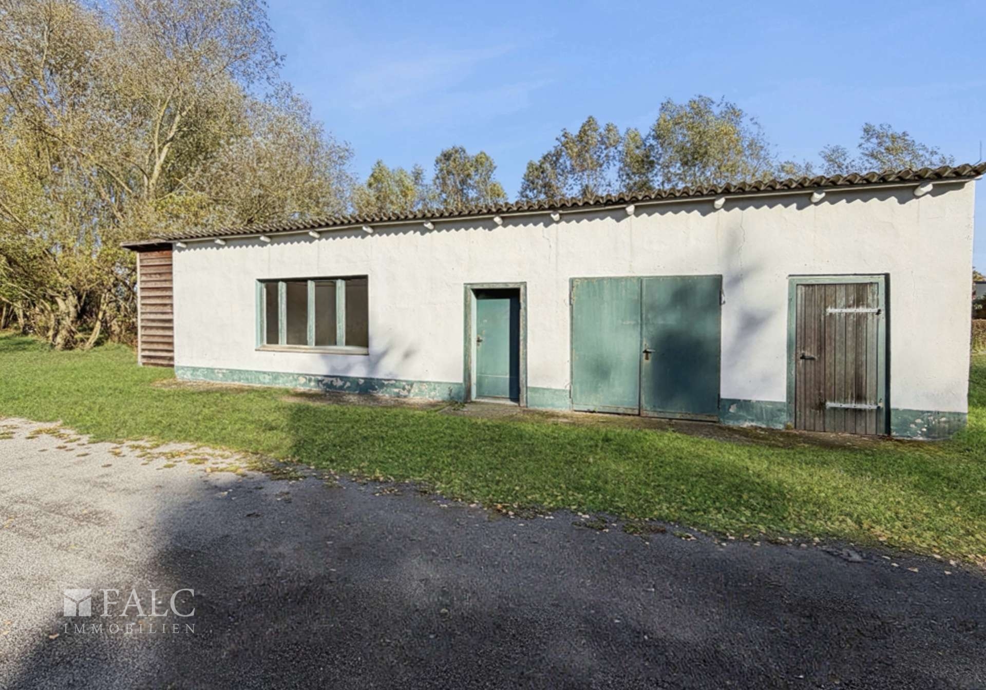 Zum Verkauf steht ein großzügig bebautes Grundstück mit einer Gesamtfläche von ca. 16.300 m². Das Anwesen verfügt über eine eigene Zufahrt; rund 6.000 m² sind als bebaubares Land ausgewiesen und eröffnen vielfältige Entwicklungsmöglichkeiten.