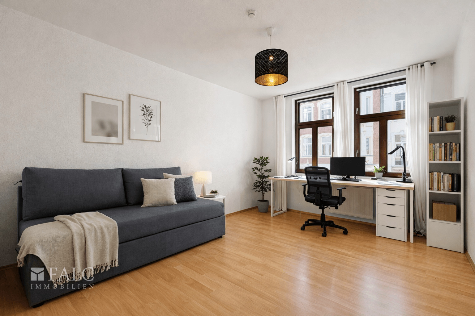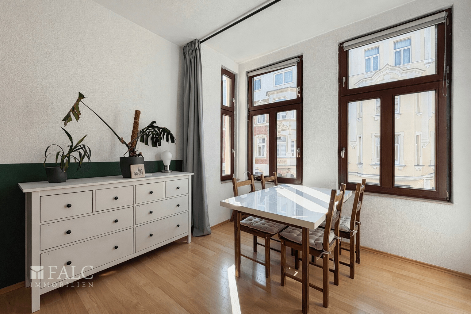 Bei der angebotenen Einheit handelt es sich um eine großzügig geschnittene 3-Zimmer-Wohnung mit einer Wohnfläche von ca. 88 m². Sie überzeugt durch einen durchdachten und funktionalen Grundriss mit drei gut proportionierten Zimmern. Besonders hervorzuheben ist das großzügige, lichtdurchflutete Wohnzimmer mit seinem charakteristischen Erker, der dem Raum eine besondere Wohnqualität verleiht. Ein Balkon mit Ausrichtung zum ruhigen Innenhof lädt zum Entspannen ein und bietet zusätzlichen Wohnkomfort. Die Wohnung befindet sich insgesamt in einem guten und gepflegten Zustand. Sowohl für Eigennutzer als auch für Kapitalanleger bietet diese Immobilie eine hervorragende Perspektive. Die aktuelle Kaltmiete beträgt 570 €. Angesichts der steigenden Nachfrage und der deutlich höheren Vergleichsmieten in der Umgebung besteht ein attraktives Mietsteigerungspotenzial.