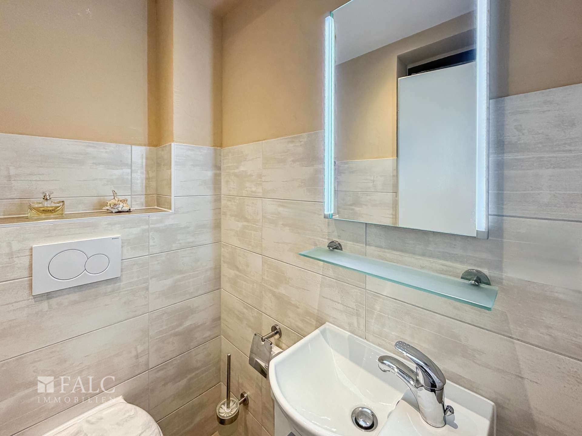 Im Erdgeschoss befindet sich ein großzügiges, lichtdurchflutetes Wohnzimmer mit Kamin, das direkten Zugang zur überdachten Terrasse bietet. Hier lassen sich sowohl gemütliche Abende am Kaminfeuer als auch gesellige Stunden im Freien genießen. Die im Kaufpreis enthaltene Küche bietet ausreichend Platz für eine moderne und funktionale Gestaltung. Ein Gäste-WC, das 2020 vollständig modernisiert wurde, rundet das Raumangebot ab. Zudem steht ein weiteres Zimmer zur Verfügung, das sich ideal als Arbeits- oder Gästezimmer eignet.