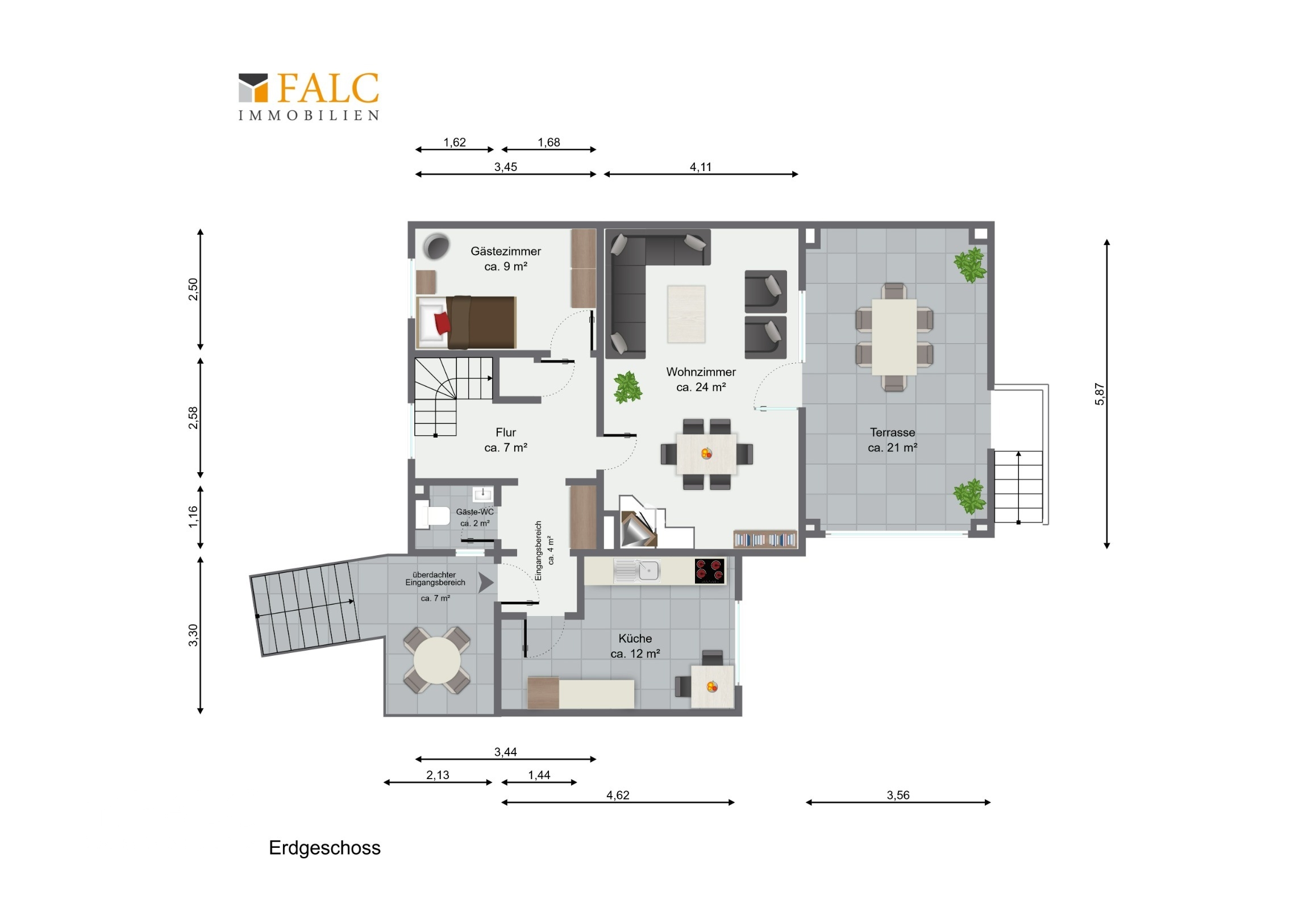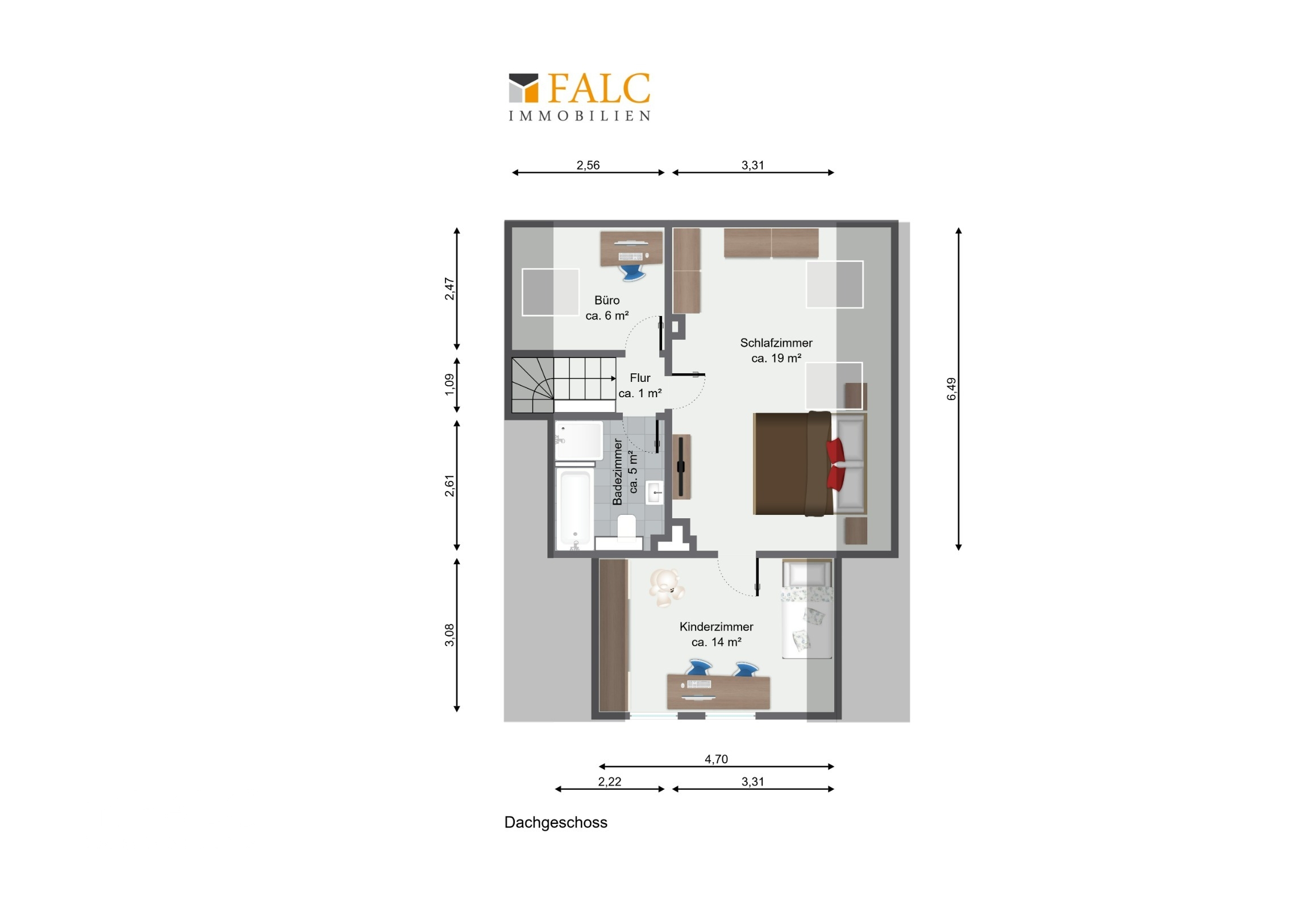 Der erste Eindruck stimmt? Dann machen Sie gerne schon einmal eine Online-Besichtigung. Nach kurzer Anmeldung folgt der komplette Zugang per E-Mail. Zur Info, aufgrund der 3D-Perspektive wirken die Räumlichkeiten in der Regel etwas kleiner als in der Realität vor Ort.