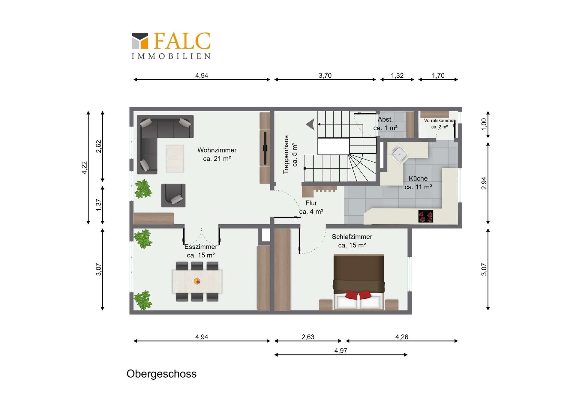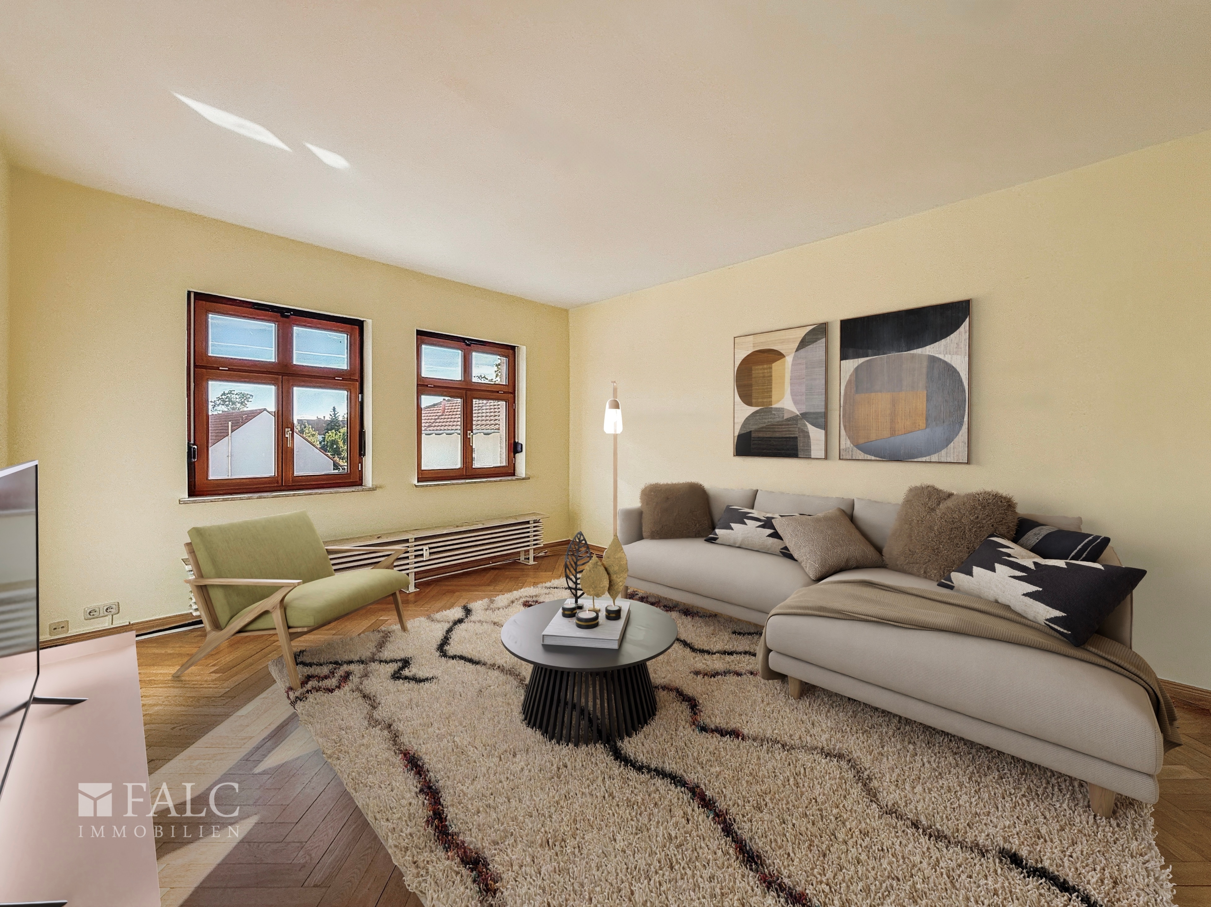 Die Einrichtung der Räume (außer Küche, Badezimmer) wurde digital gestaltet. Die Beschaffenheit der Räume ist auf den Bildern komplett original belassen.