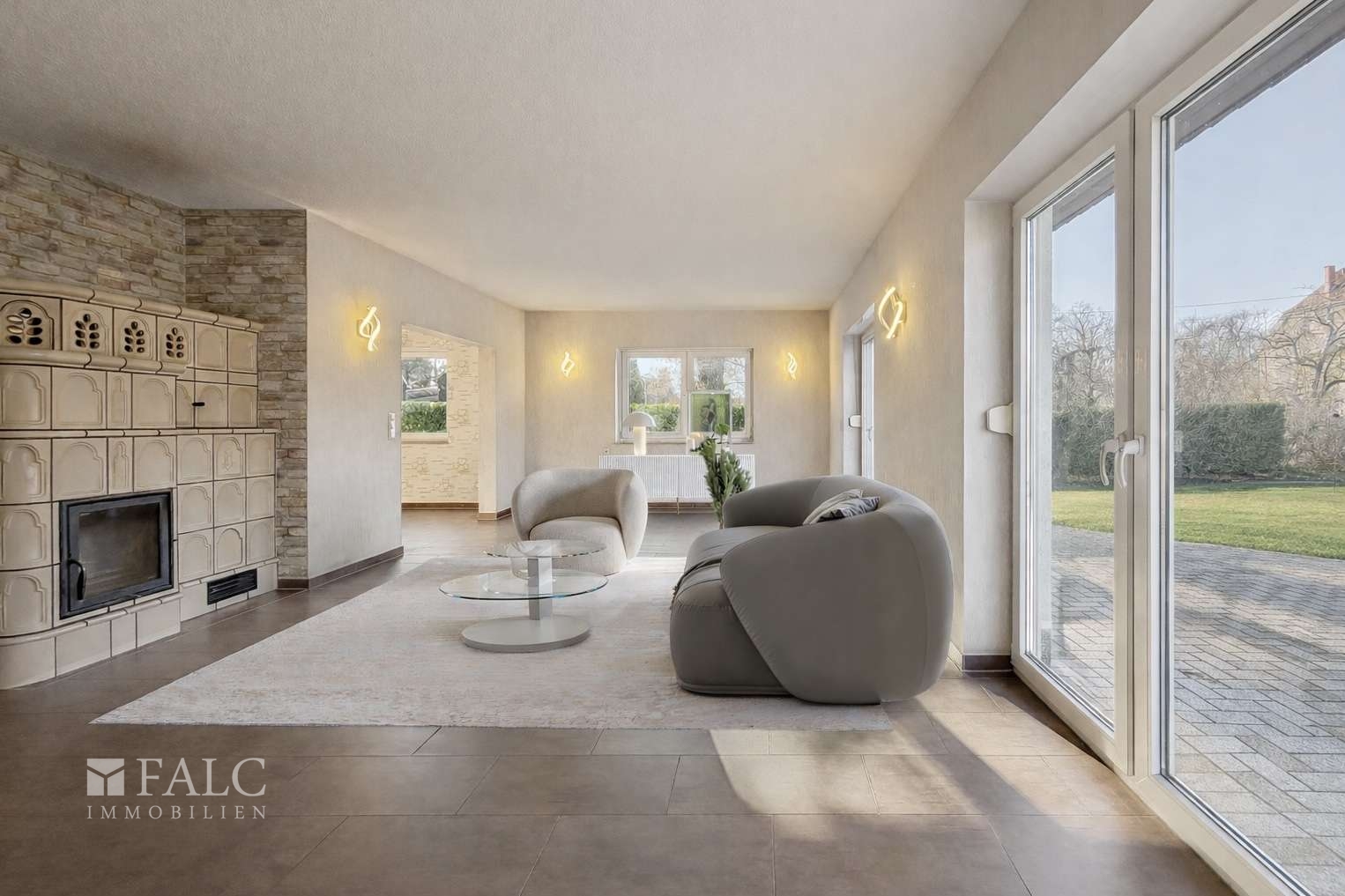 Die Einrichtung/Möblierung einiger Räume wurde digital gestaltet. Die Beschaffenheit der Räume ist auf den Bildern komplett original belassen.