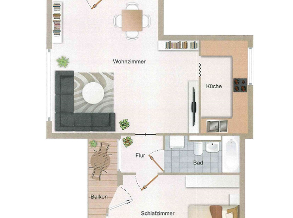 Zimmer: - Diele mit Garderobe - großes Wohnzimmer - EBK-Küche Tür zum Wohnzimmer im Kaufpreis enthalten - Schlafzimmer - Wannenbad mit separater Dusche in Deckenhöhe gefliest - Süd-Balkon - Kellerraum (trocken)