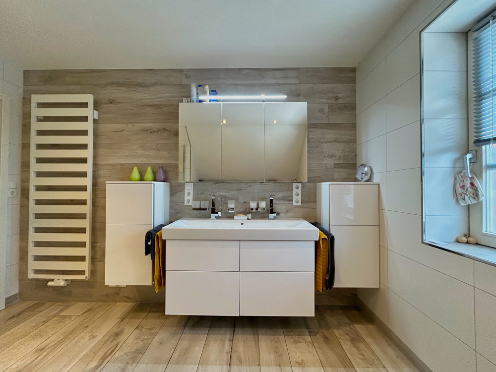 Im Obergeschoss befinden sich das Elternschlafzimmer, ein separates Ankleidezimmer sowie zwei weitere Schlafzimmer, die sich flexibel als Kinderzimmer, Gästezimmer oder Hobbyraum nutzen lassen. Das Badezimmer wurde bereits erneuert und präsentiert sich modern und gepflegt.