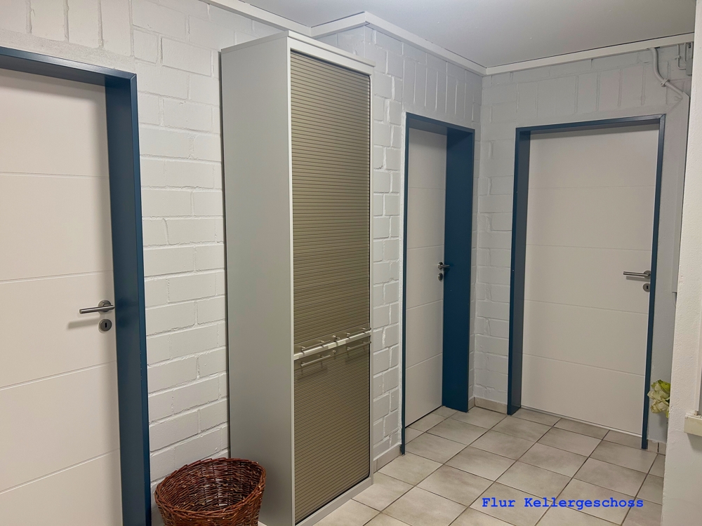 Auch das Kellergeschoss bietet zusätzlichen Raum. Der beheizte und trockene Keller verfügt über eine angenehme Deckenhöhe und umfasst einen Flur, zwei Vorratsräume, einen weiteren Flurbereich, den Heizungsraum sowie ein großzügiges Büro, das sich ideal als Arbeits- oder Hobbybereich eignet.