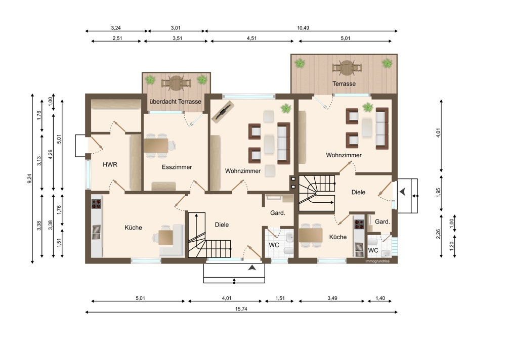 Raumaufteilung Haupthaus (ca. 152,23 m²):