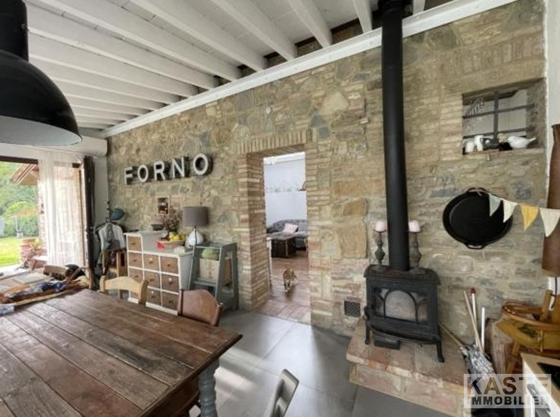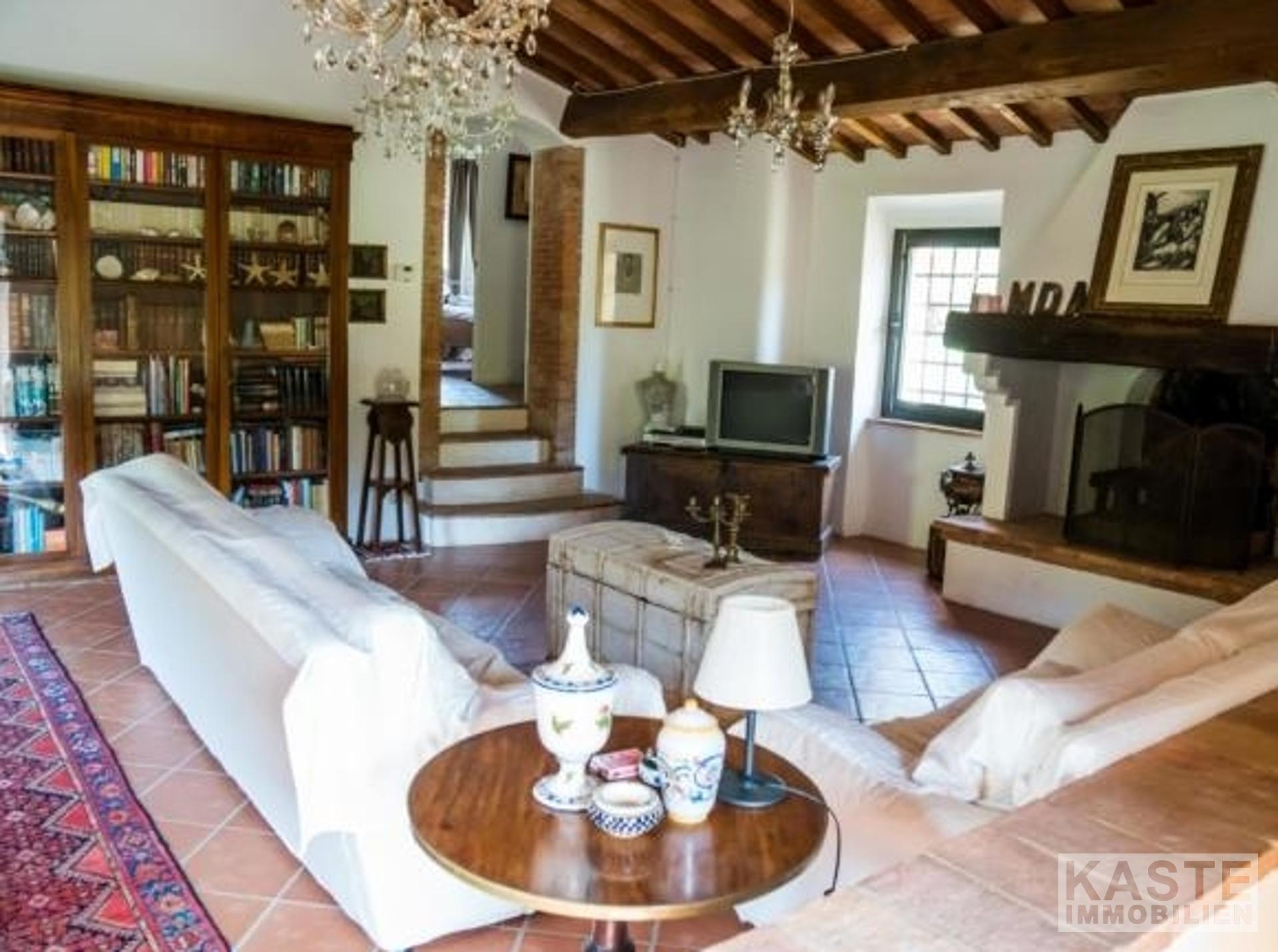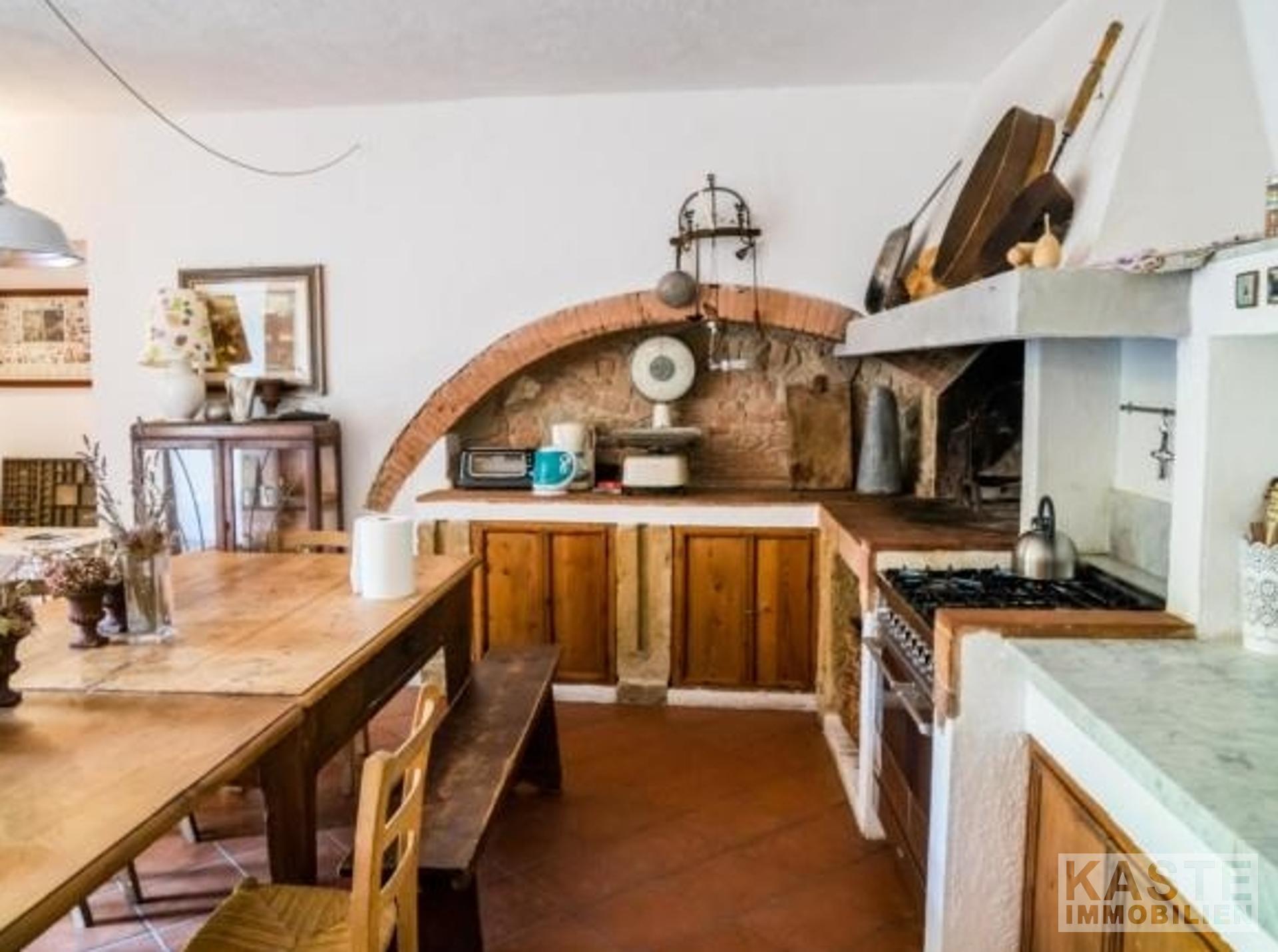 IL MOLINO: Landhaus auf 3 Etagen mit einer Gesamtfläche von 250 qm. Erdgeschoss - teilweise mittelalterliche Ursprünge, einst als Mühle genutzt, wurde vollständig renoviert und in eine ca. 30 qm große Küche mit einem großen Kamin umgewandelt und die gesamte Küche wurde mit wiederverwendeten Materialien gebaut. Von der Küche aus gelangen Sie in einen privaten, mit Terrakottafliesen gepflasterten Hof von etwa 100 qm. Neben der Küche befindet sich ein Abstellraum mit Waschküche. Im Außenbereich neben der Küche befindet sich ein alter Holzofen mit Überdachung. Von der Küche aus führt eine Treppe aus wiederhergestellten Terrakotta-Ziegeln nach oben. Erster Stock - Wohnzimmer mit großem Kamin, der aus den gleichen Deckenbalken gebaut wurde, die komplett mit Balken und Terrakotta-Ziegeln renoviert wurden. Sie können diesen Raum auch über eine Außentreppe erreichen, denn dies ist der Haupteingang. Auf der gleichen Etage befindet sich das Hauptbadezimmer, sehr groß mit Badewanne und Dusche und begehbarem Kleiderschrank, ein Dreibettzimmer, ein Doppelzimmer mit Terrasse und ein Einzelzimmer. Auf dieser Etage befindet sich auch der Heizungsraum. Das gesamte Anwesen wird mit Flüssiggas beheizt, es gibt einen unterirdischen Tank in der Nähe der Straße. Zweite Etage - über eine Treppe aus Terrakotta und Holz gelangen Sie in den Turm, wo sich zwei Schlafzimmer und ein Badezimmer befinden. Die gesamte Etage verfügt über originale Balken und Ziegel.