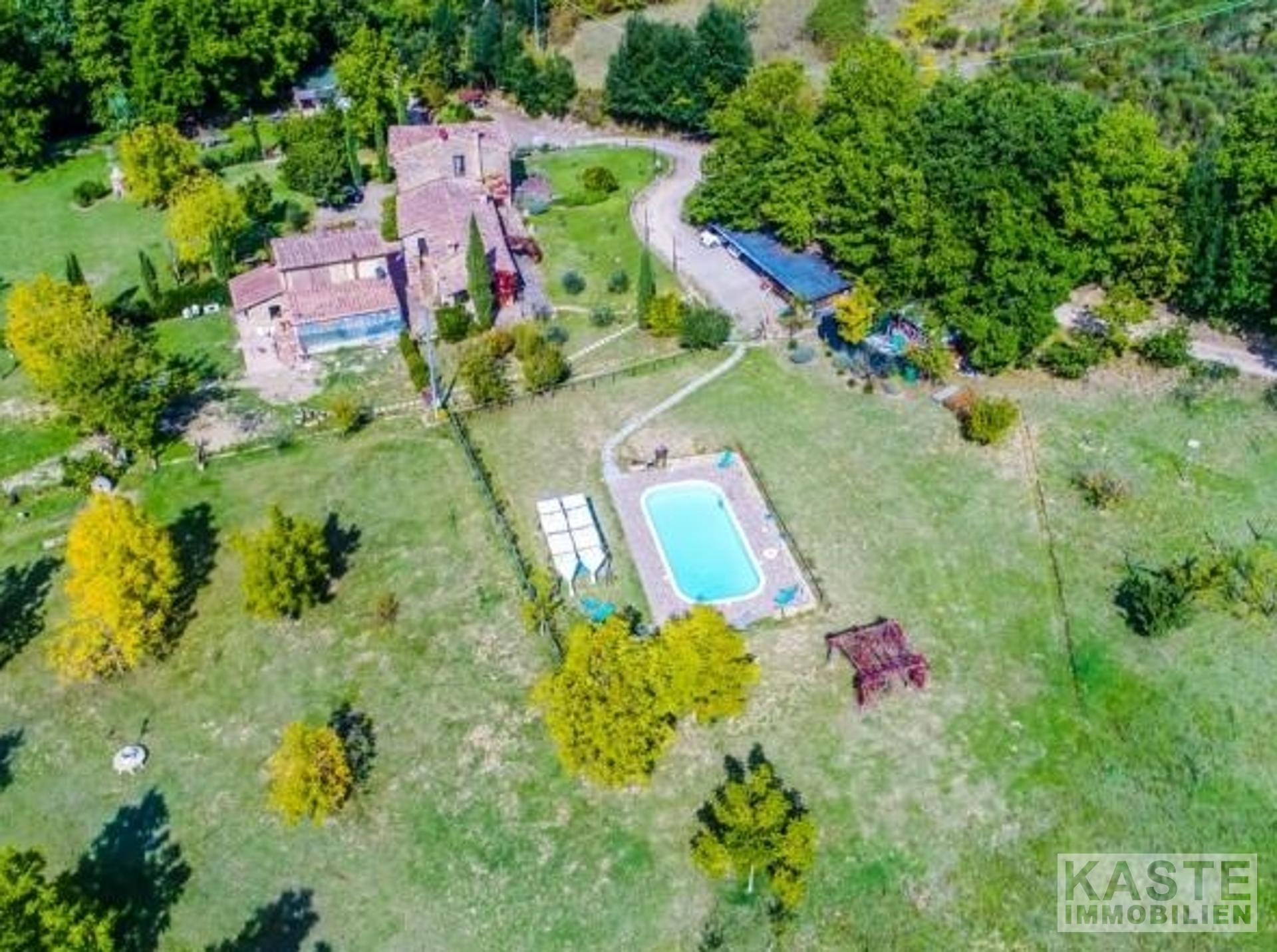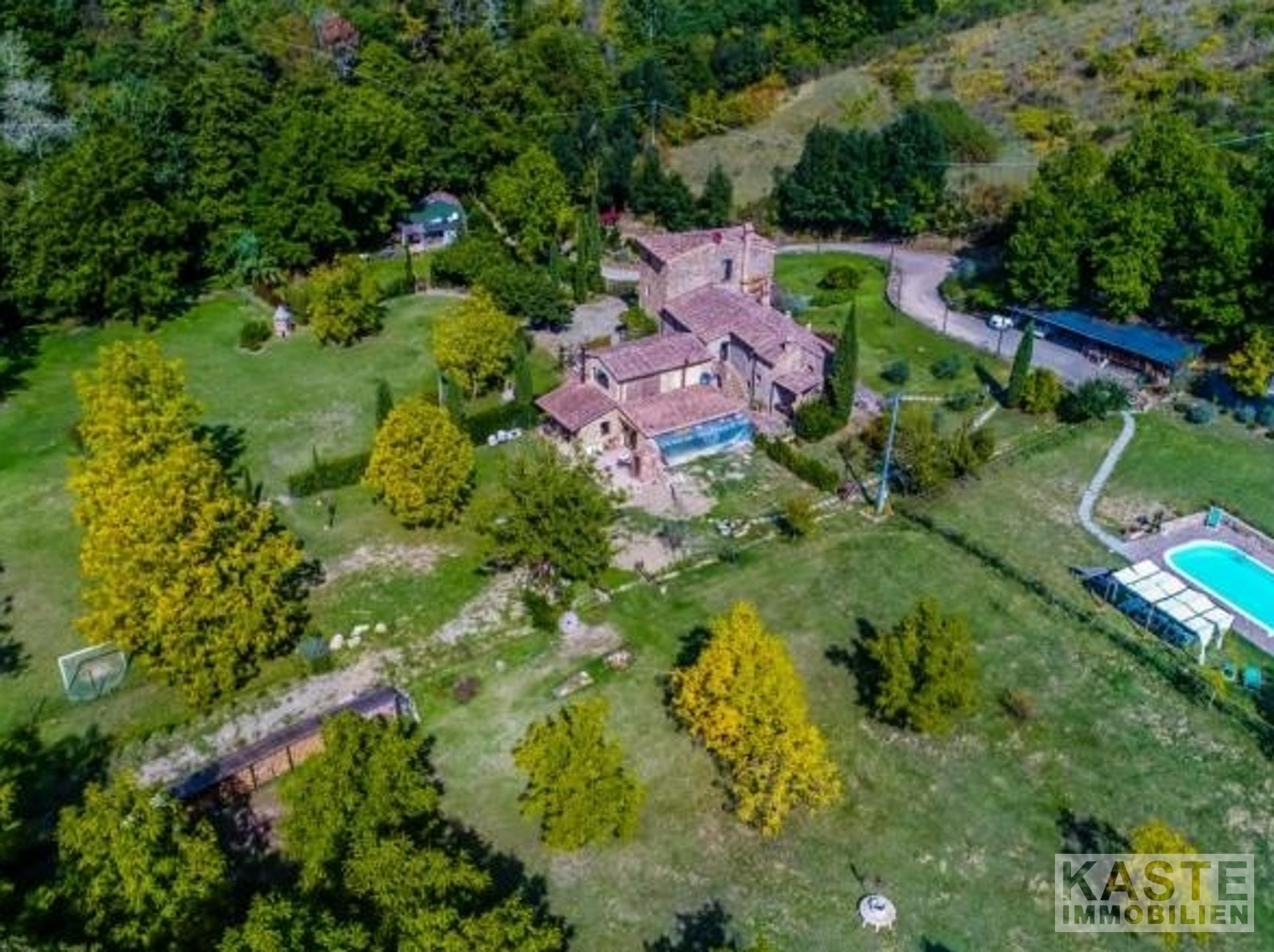 Erstaunliche Restaurierung einer alten Mühle im Tal von Montaione, nur 800 m vom Zentrum des Dorfes entfernt. Über eine teils unbefestigte und teils gepflasterte Straße erreichen Sie das Tal, das vom Fluss Egola begrenzt wird, der auf der einen Seite die Grenze des Grundstücks markiert, während die andere Seite von der Straße markiert wird, die nur zum Grundstück führt. Das Land ist ca. 1,5 Hektar groß und besteht zum Teil aus Olivenbäumen, ca. 100 Bäumen, und zum Teil aus Gärten. Im Garten gibt es einen Swimmingpool 10x5m mit einem Solarium aus Porphyr rund um den Pool, einer Dusche und Maschinen, einem Entspannungsbereich und einem Pavillon. Im Park gibt es ein Arena-Fußballfeld.