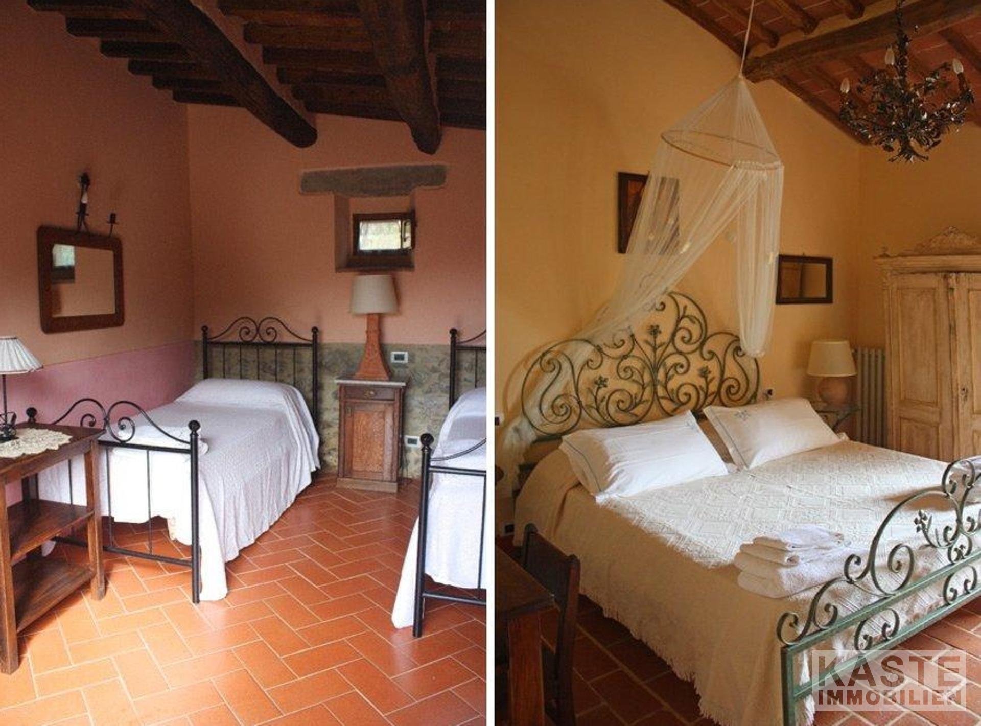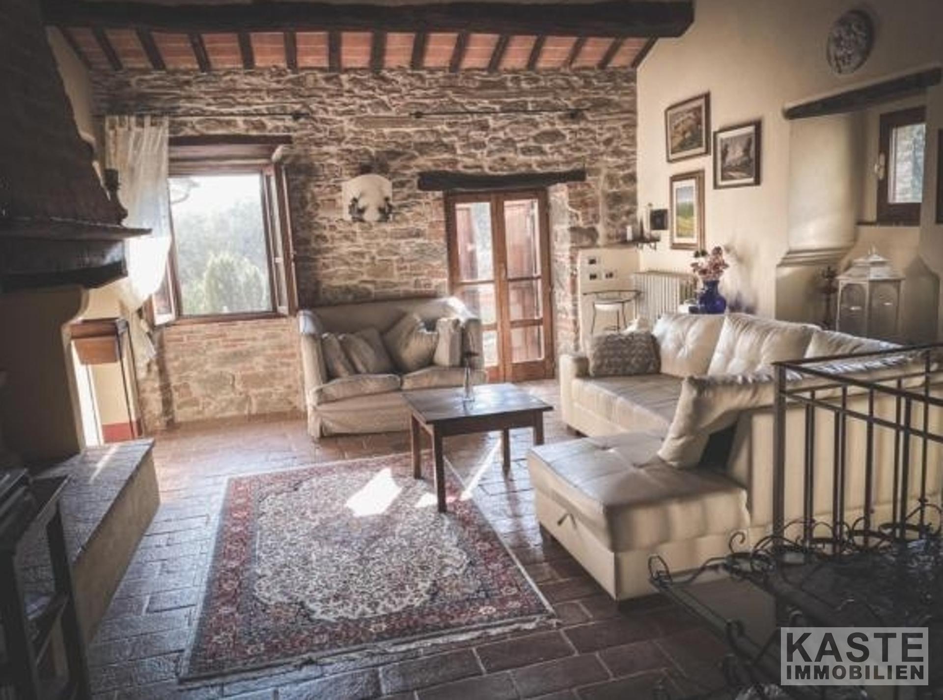 Villa Stefania ist ein schönes, restauriertes Bauernhaus das ca. 220 qm umfasst. Es ist nur wenige Autominuten von der mittelalterlichen Stadt Cortona in der Toskana entfernt. Dieses aus Stein gebaute und restaurierte Haus mit 5 Schlafzimmern und 3 Badezimmern liegt inmitten von Olivenbäumen und einem privaten Garten mit Blick auf das Tal und Cortona im Vordergrund. Das Anwesen selbst befindet sich auf drei Etagen. Im Erdgeschoss befindet sich das Gästehaus mit zwei Schlafzimmern, Bad und Küche mit einem Esszimmer Der Hauptteil des Hauses erstreckt sich über zwei Etagen und besteht aus Küche, Esszimmer, Bad und Waschküche in der ersten Etage. Über eine Treppe gelangt man in das große ursprüngliche Wohnzimmer mit Kamin. Hier auf dieser Etage findet man auch drei Schlafzimmer und ein Badezimmer. Das Haus wurde im traditionellen toskanischen Stil restauriert und bewahrt Details wie Kastanienholzbalken, Terrakottafliesen, originales Steinbecken und Fenster-/Türumrandungen aus Stein. Im Garten gibt es verschiedene Bereiche zum Sitzen und Genießen der Natur und des herrlichen Panoramas. Ein 12×6 m großer Swimmingpool befindet sich nur wenige Schritte vom Haus entfernt und bietet eine ebenso hervorragende Aussicht. Der originale Brotbackofen ist noch funktionstüchtig und ist ein schöner Ort für besondere Dinner, ebenso wie der Grillplatz unter einer Pergola im Hauptteil des Gartens. Olivenbäume und Weinreben fügen dem gesamten Ambiente des Grundstücks eine wunderbare Note hinzu und bilden den perfekten Rahmen für das Haus. Alle Versorgungseinrichtungen sind in perfektem Zustand und eine Solar-Photovoltaik-Anlage macht das Haus komplett. Der private Außengarten von 5000 qm ist komplett eingezäunt und ist ausgestattet mit Olivenbäumen, Weinbergen und weitläufigen Rasenflächen.