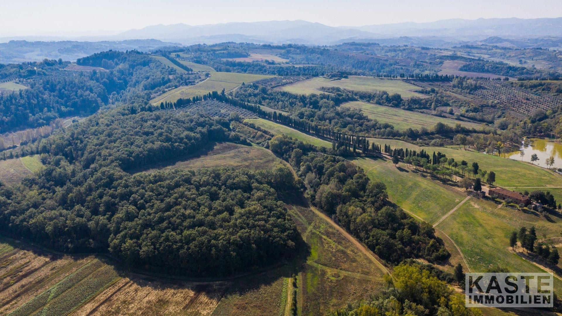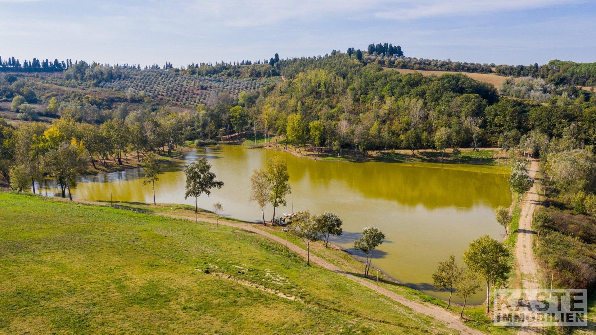 Ein riesiges Bauernhaus (ehemaliges Kloster) auf 2 Etagen mit einer Pfarrkirche aus dem Jahr 700. Umgeben von 100 ha Land mit einem See, einem Wald (welcher ein privates Wildgehege hat), vielen Feldern sowie ca. 400 Olivenbäumen. Die Zufahrt zum Grundstück erfolgt über einen sehr gepflegten Feldweg, eine Zypressenallee, die direkt vor das Bauernhaus führt. Das Anwesen liegt ganz oben auf dem Hügel mit einem 360°-Blick auf die Umgebung, welche malerisch schön ist.