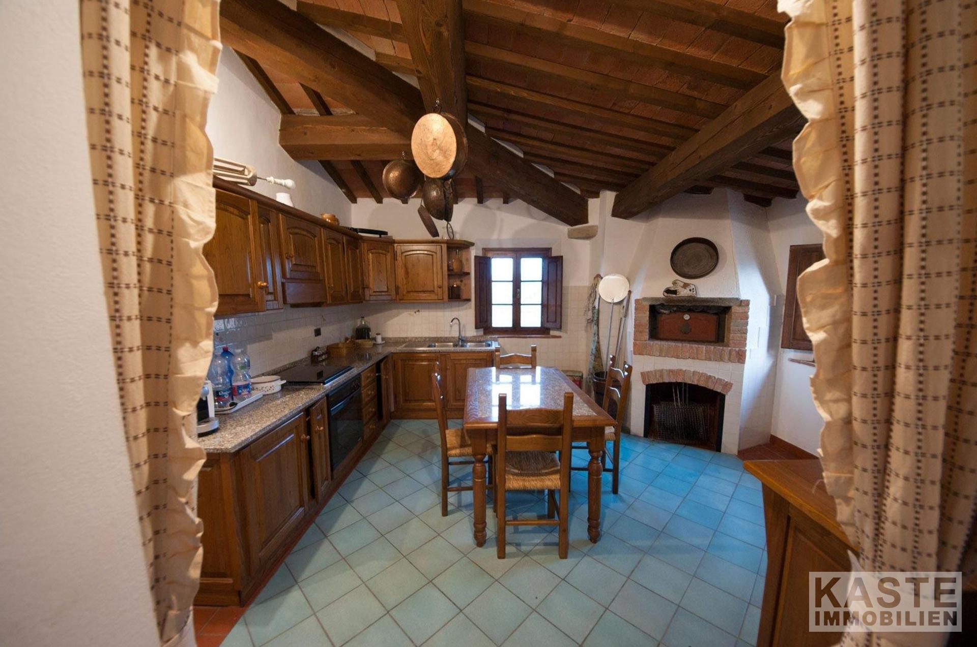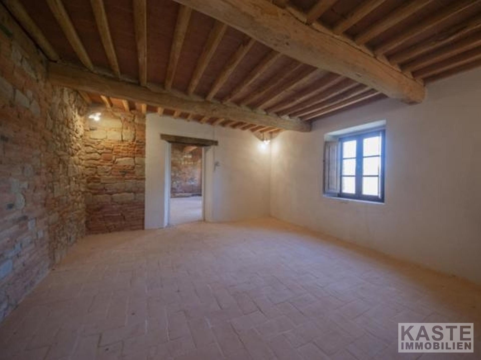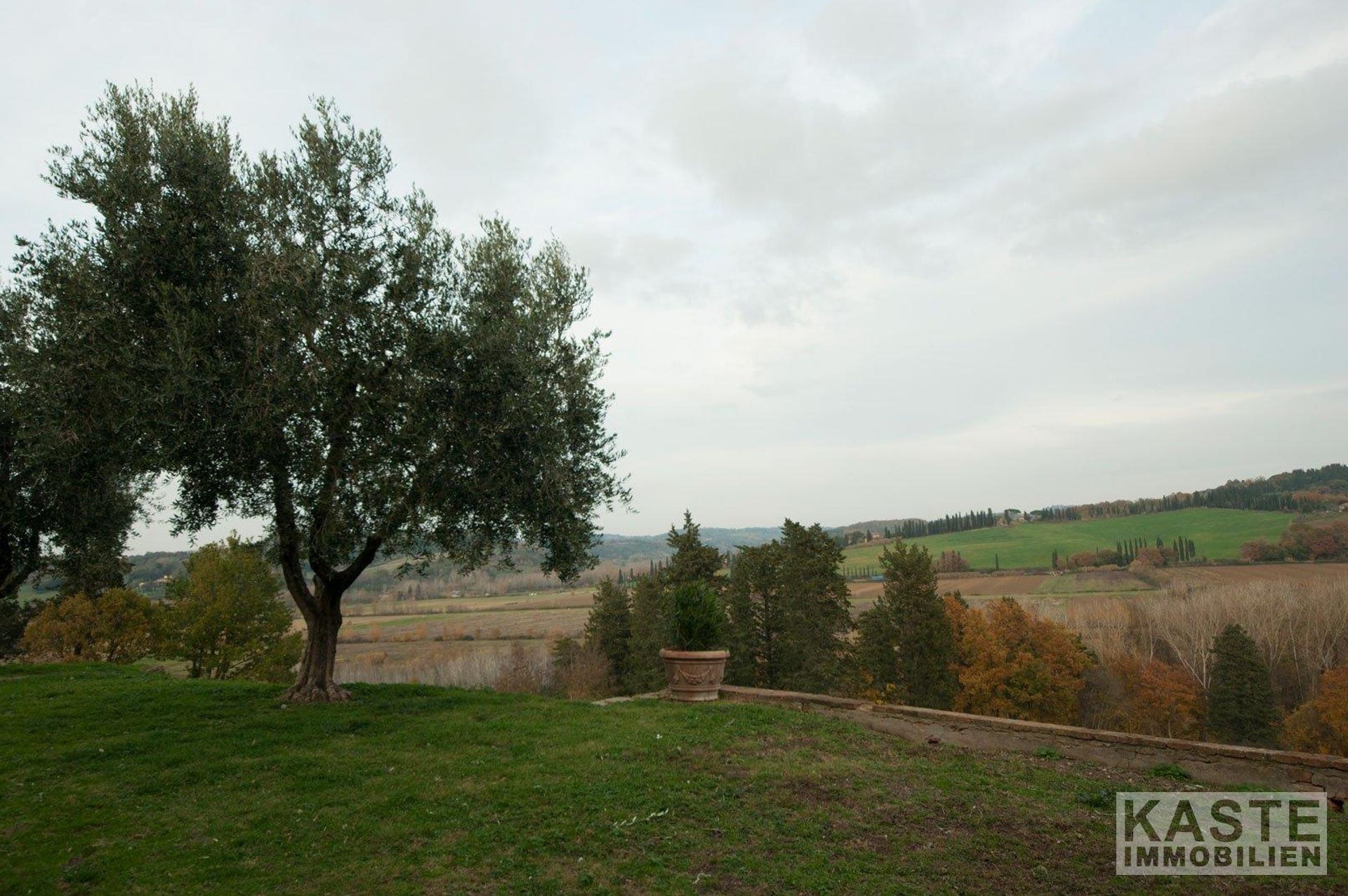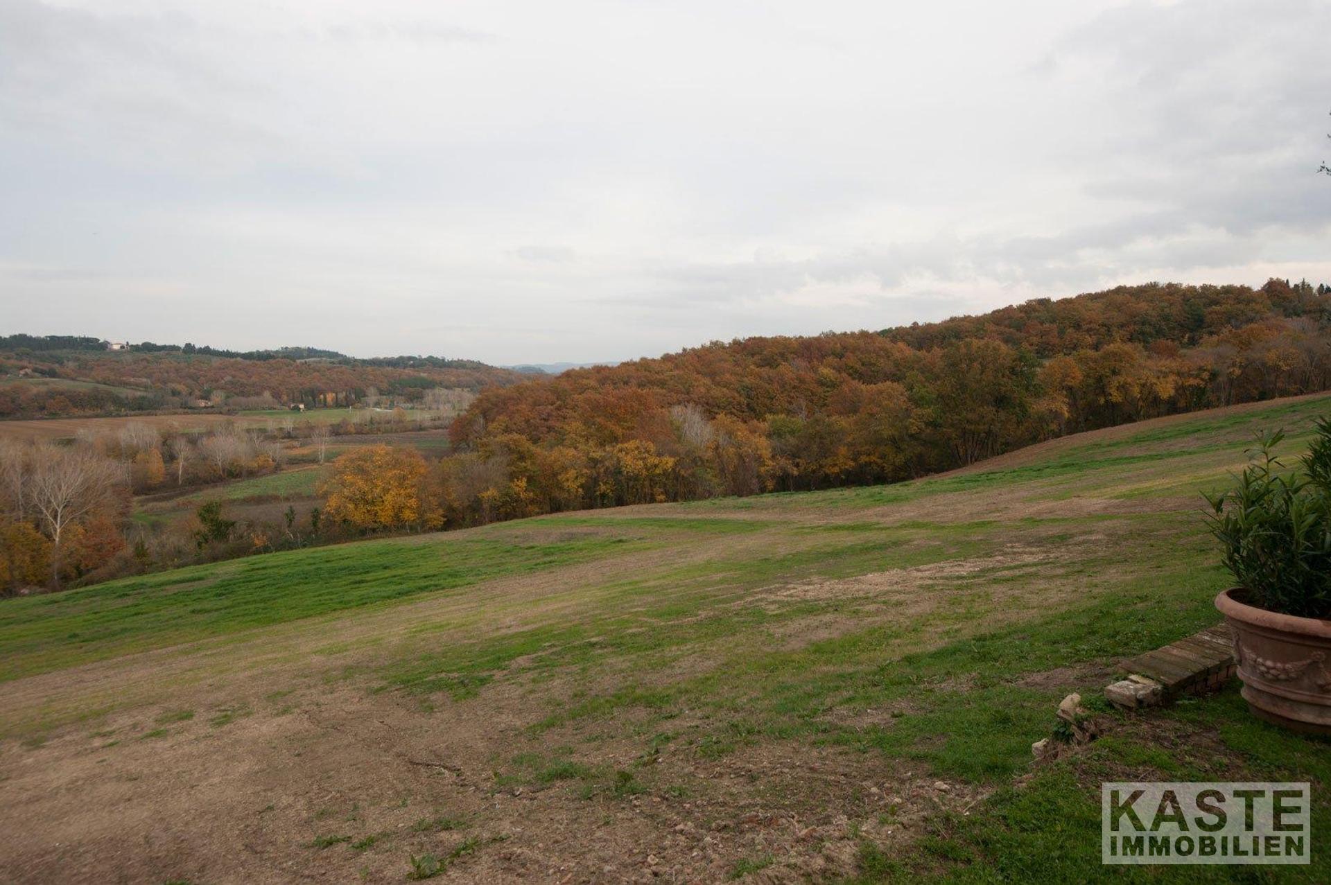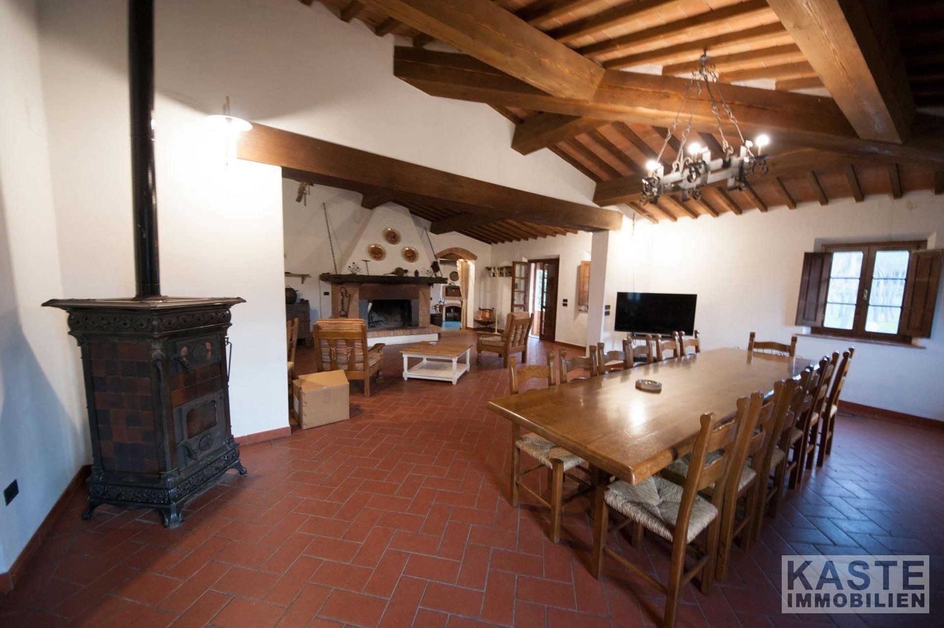 Ein riesiges Bauernhaus (ehemaliges Kloster) auf 2 Etagen mit einer Pfarrkirche aus dem Jahr 700. Umgeben von 100 ha Land mit einem See, einem Wald (welcher ein privates Wildgehege hat), vielen Feldern sowie ca. 400 Olivenbäumen. Die Zufahrt zum Grundstück erfolgt über einen sehr gepflegten Feldweg, eine Zypressenallee, die direkt vor das Bauernhaus führt. Das Anwesen liegt ganz oben auf dem Hügel mit einem 360°-Blick auf die Umgebung, welche malerisch schön ist.