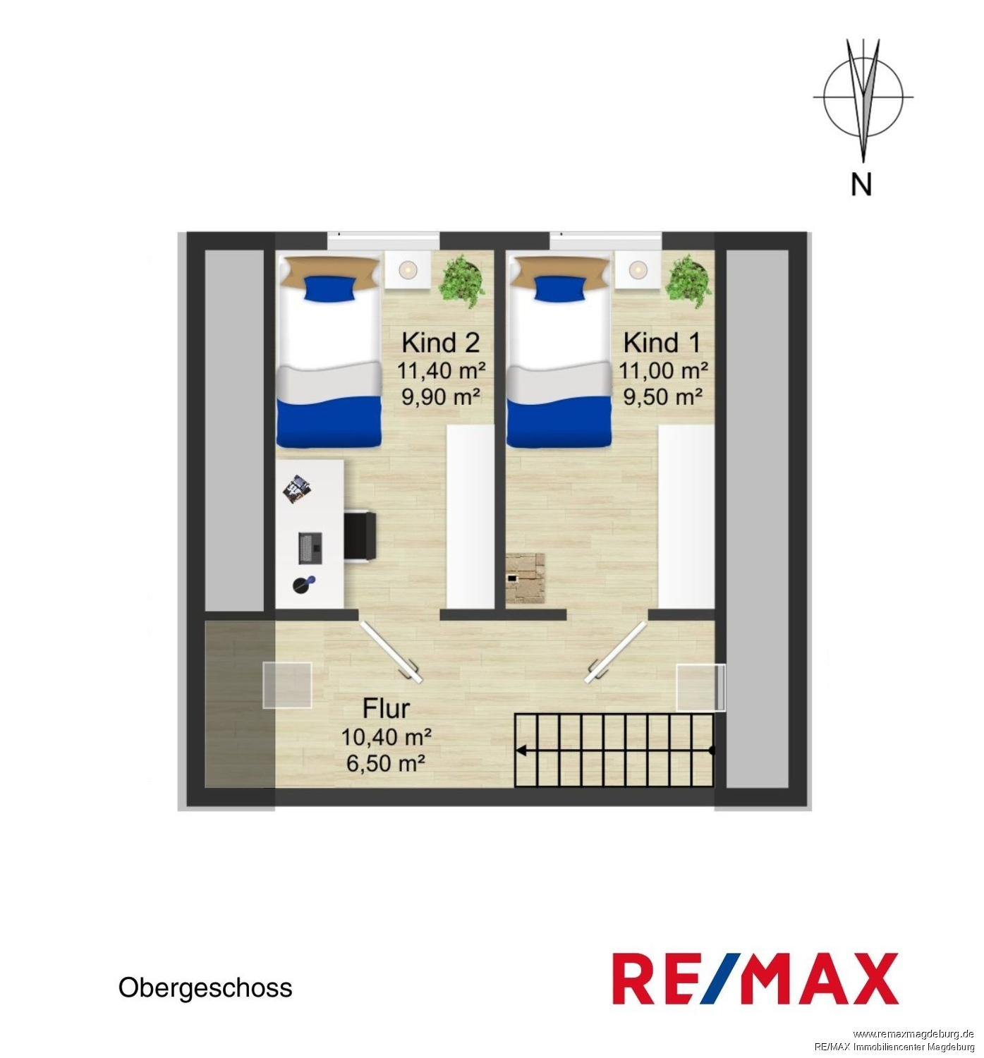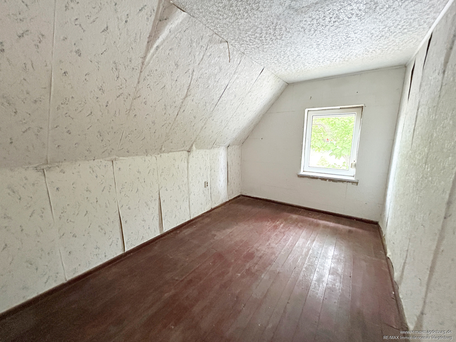 Im Dachgeschoss befinden sich zwei weitere Zimmer sowie ein Flur. Die Räume lassen sich flexibel als Kinder-, Gäste- oder Arbeitszimmer nutzen.