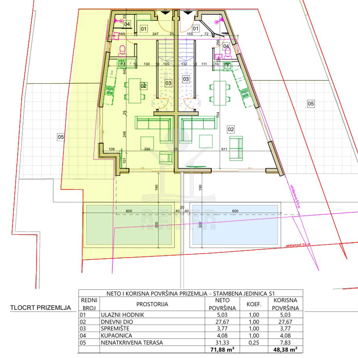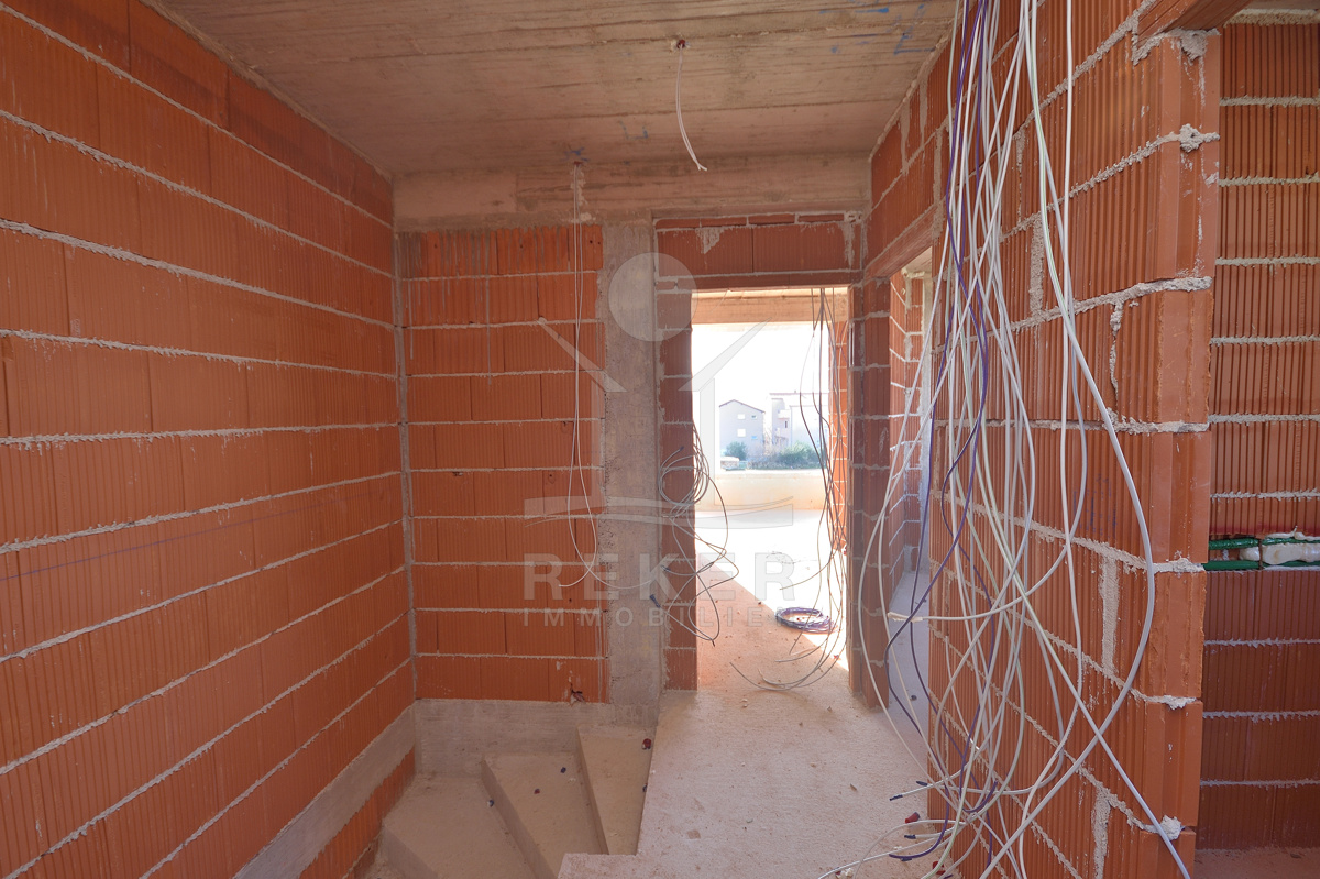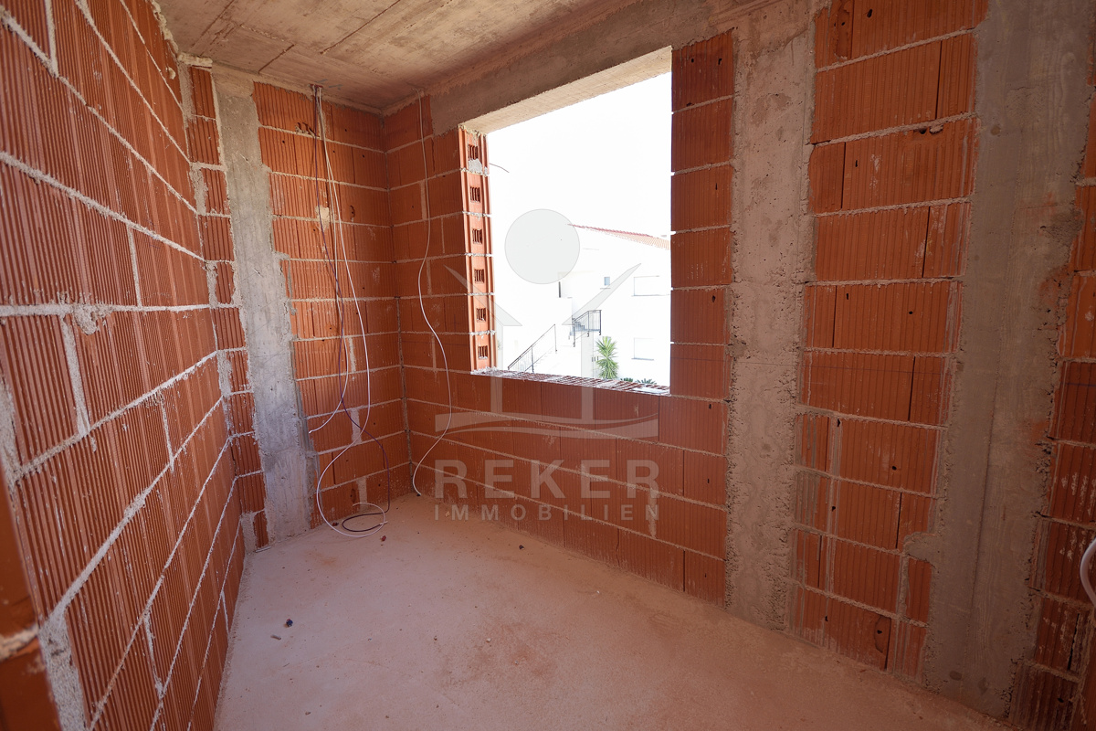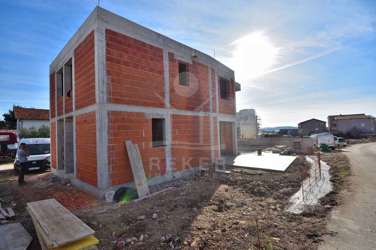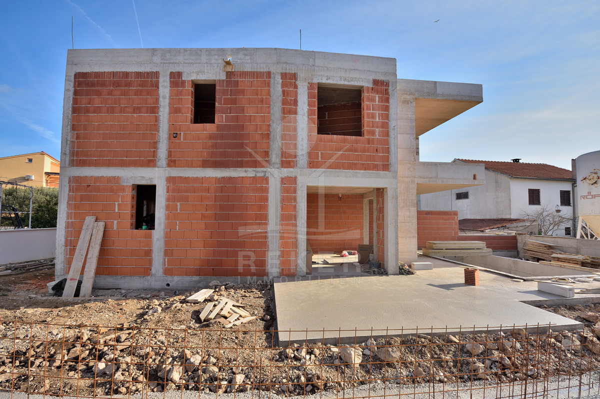 In ruhiger Wohnlage von Vodice entsteht eine moderne Doppelhaushälfte, nur wenige Gehminuten vom Zentrum und vom Strand entfernt. Die Umgebung mit gepflegten Einfamilienhäusern und mediterranem Grün vermittelt ein angenehmes Wohngefühl. Wer Ruhe sucht und trotzdem nicht auf kurze Wege zu Geschäften, Restaurants und der Promenade verzichten möchte, findet hier das passende Zuhause. Zwei private Stellplätze stehen direkt am Haus zur Verfügung. Die Fertigstellung ist für Ende 2026 vorgesehen. Wer früh entscheidet, sichert sich ein stilvolles Zuhause mit Pool, Garten und kurzer Distanz zum Meer.
