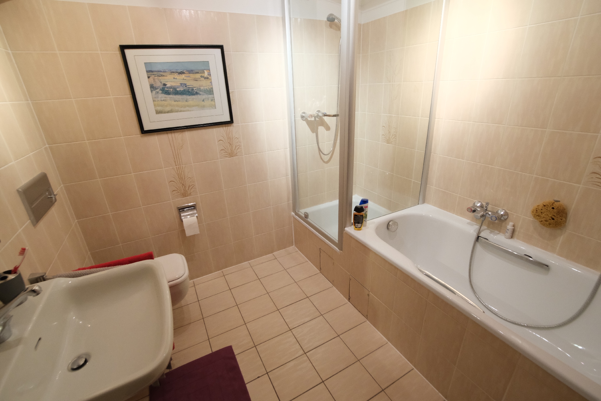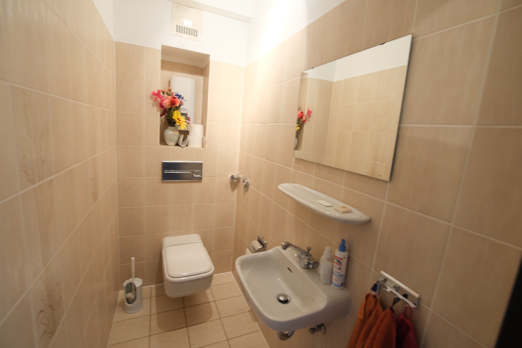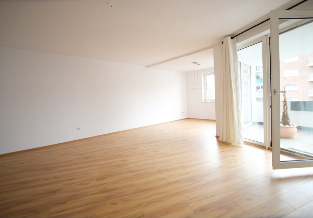 Über ein gepflegtes Treppenhaus gelangen Sie zu dieser großzügigen Wohnung im 2. Obergeschoss. Die Diele bietet ausreichend Platz für eine Garderobe und ermöglicht den Zugang zu allen Räumen, die sich wie folgt aufteilen: Ein helles, gut geschnittenes Wohn- und Esszimmer mit zwei bodentiefen Fenstern sowie einer Fenstertür zur großen, nach Süden ausgerichteten Loggia, ein geräumiges Schlafzimmer, ein Büro bzw. Kinderzimmer, ein Badezimmer mit Badewanne, Dusche, zwei Waschbecken und WC. Ein Gäste-WC sowie ein Abstellraum und ein Tiefgaragenstellplatz runden dieses Angebot ab. Die Einbuküche kann vom Vormieter übernommen werden.