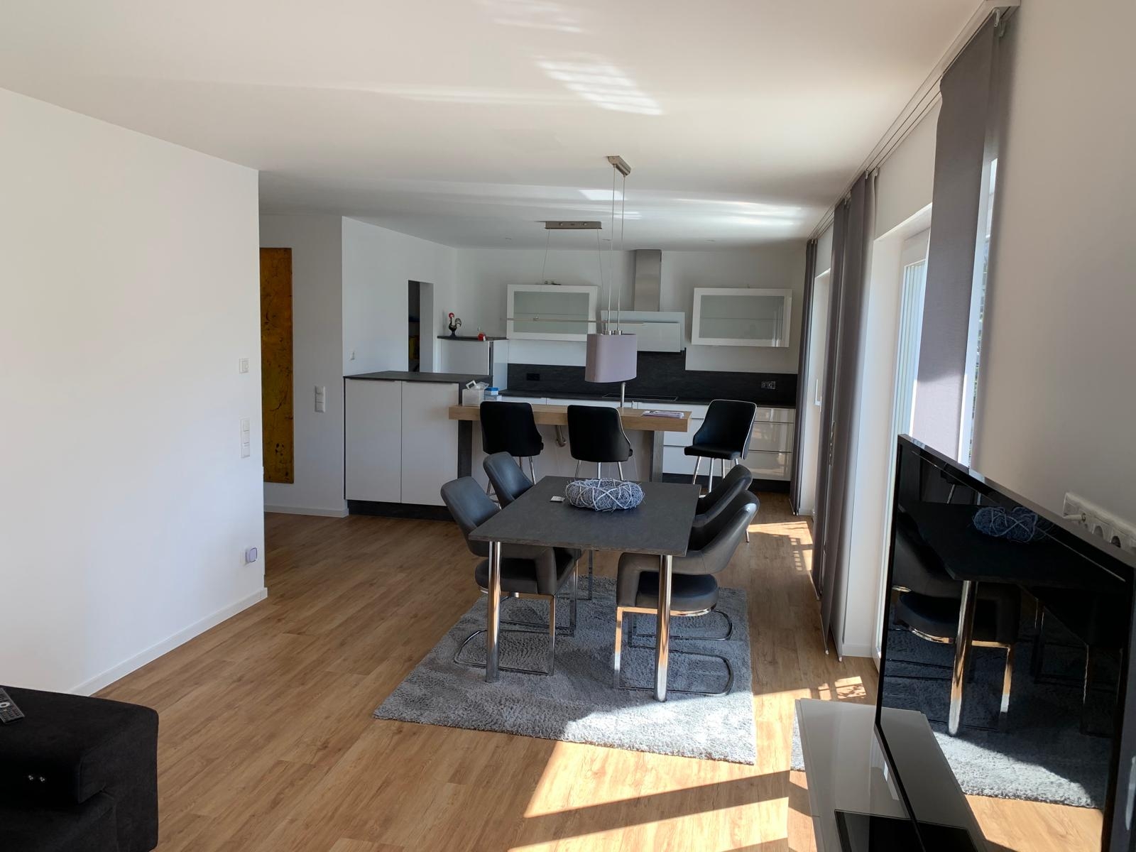 Die moderne offene Raumgestaltung umfasst einen großzügigen Wohn-Essbereich, eine einladende Küche sowie ein Schlafzimmer. Das Wellness-Bad ist mit einer Badewanne, einer Regen-Dusche, einem WC und einem Fenster ausgestattet und bietet einen Rückzugsort für Entspannung. Ein Balkon lädt dazu ein, die frische Luft zu genießen.