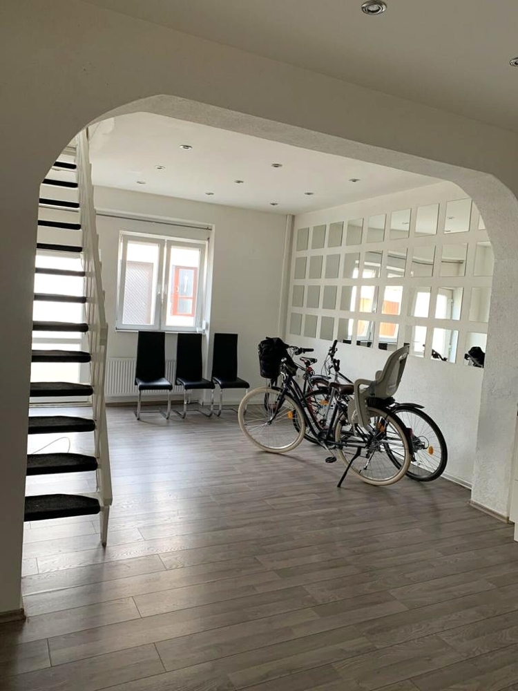 Es gibt von zwei Straßenseiten aus Zufahrtsmöglichkeiten zum Haus. Alle vier Wohneinheiten verfügen über separate Eingänge, was eine hohe Privatsphäre und Unabhängigkeit für die Bewohner gewährleistet. Zusätzlich gibt es im Erdgeschoss eine kleine Gewerbeeinheit (ca. 18 m²) mit separatem WC und Waschbecken – ideal für ein kleines Büro, Studio oder Ladengeschäft.