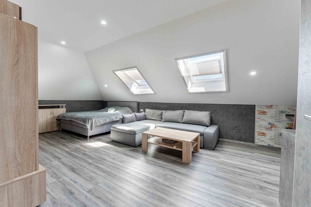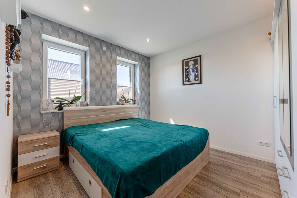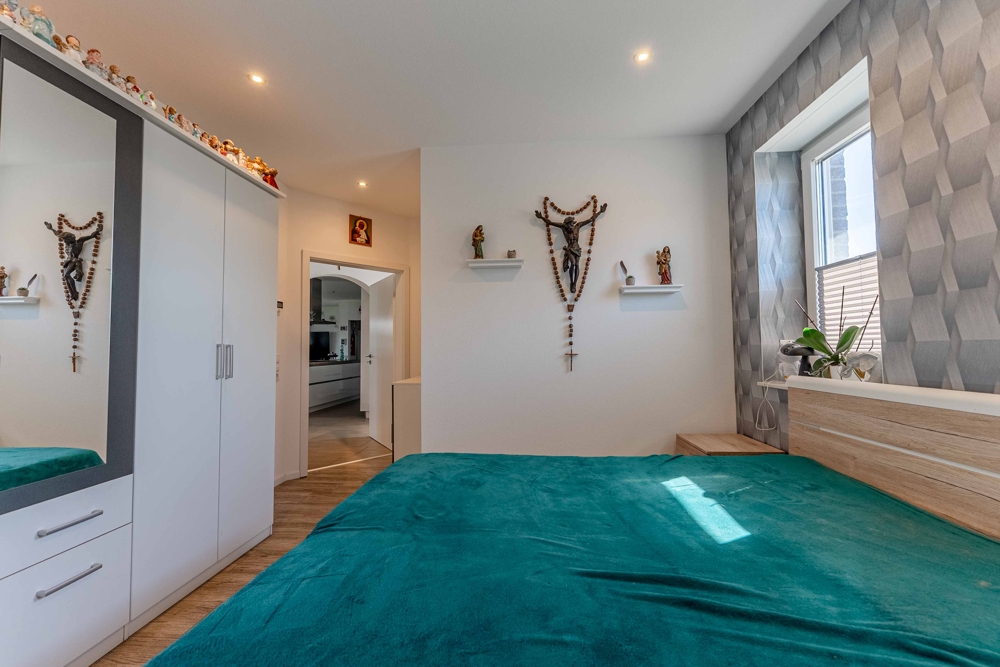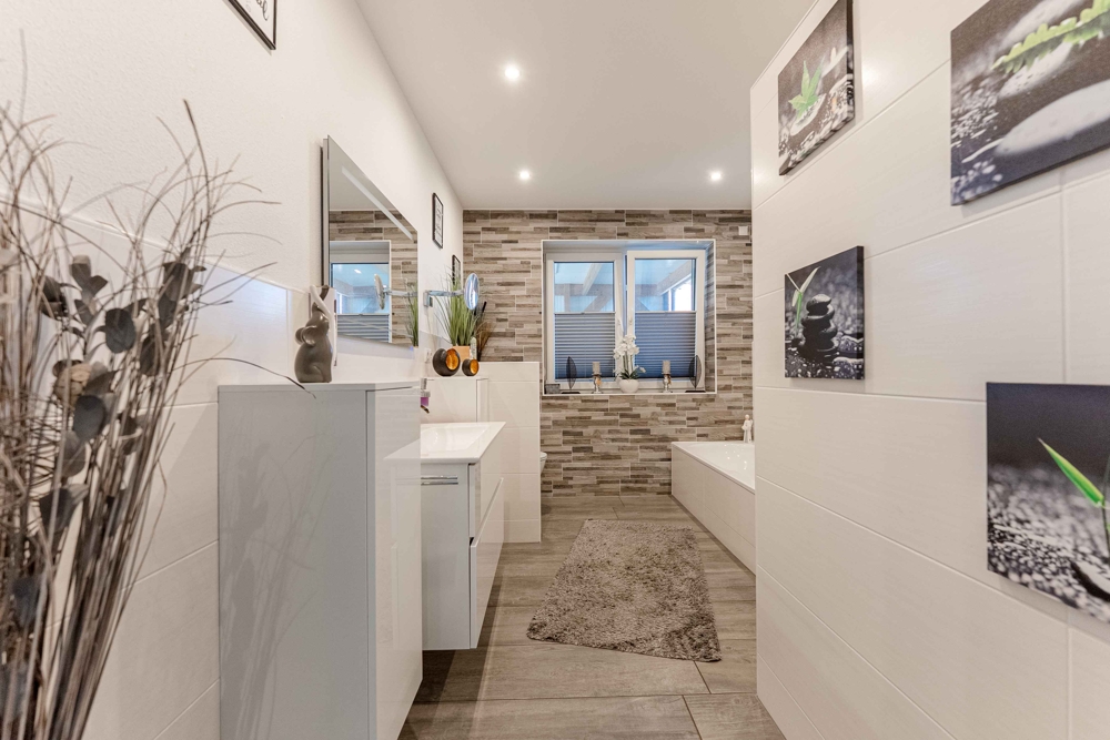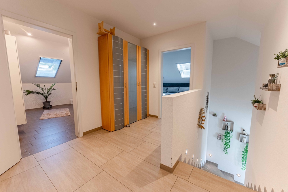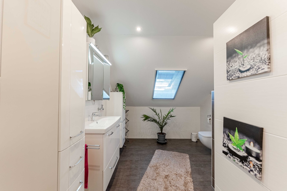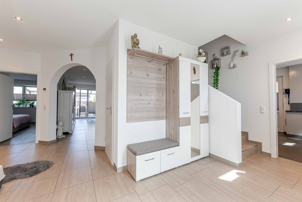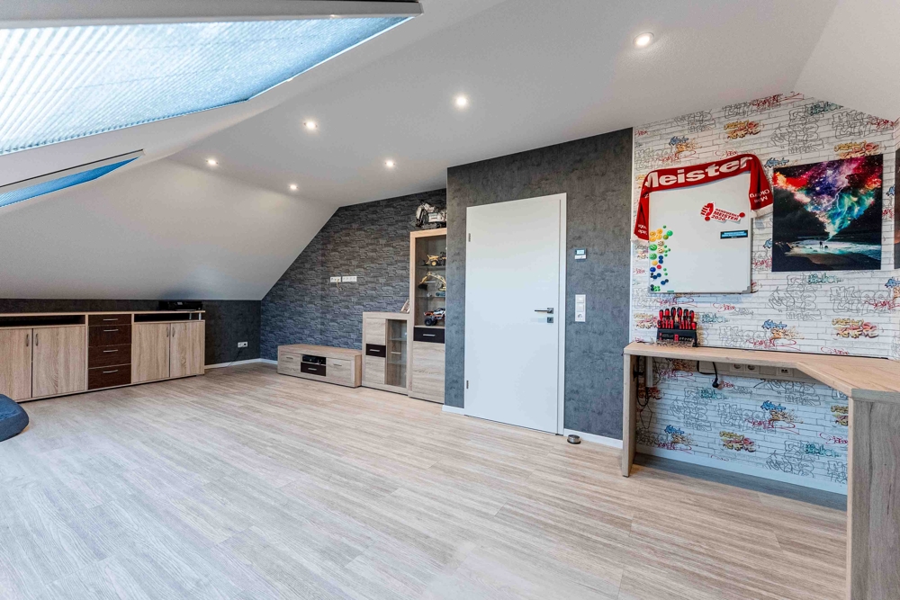 - PV-Anlage 15kw 2023 / 38 Platten - Speicher 10kw 2023 - Werkstatt und Werkbänke - Überdachte Terrasse am Haus - Steckdosen in Fensterlaibung - Sanitäreinrichtung en von Villeroy und Boch - Solar für Warmwasser 250 Liter/2 Platten - Carport 1. mit Gerätehaus - Einbauküche / Neupreis heute mit Quooker ca. 20.000,00 EUR - Badezimmer 1 = 9,48 qm - Badezimmer 2 = 12,62 qm - Sackgassenlage - Fußbodenheizung - Elektrische Jalousien - 3-fach Verglasung - Zwischendecke "Nebengebäude" 16 cm Dämmung - Nebengebäude 2-fach Verglasung - Speisekammer direkt von der Küche erreichbar - Obergeschoss über Betontrepppe erreichbar - Gäste-WC mit Dusche - Glasfaseranschluss - Internetanschluss auch in Werkstatt und Partyraum - TV-Anschluss im Partyraum - HWR mit erhöhten Stellplätzen - Zweiter Eingang über Carport in den Hauswirtschaftsraum - Komplett eingezäunt / uneinsehbar - Fensterbänke aus Stein - Eine im Rasen eingebaute ganzflächige Bewässerungsanlage