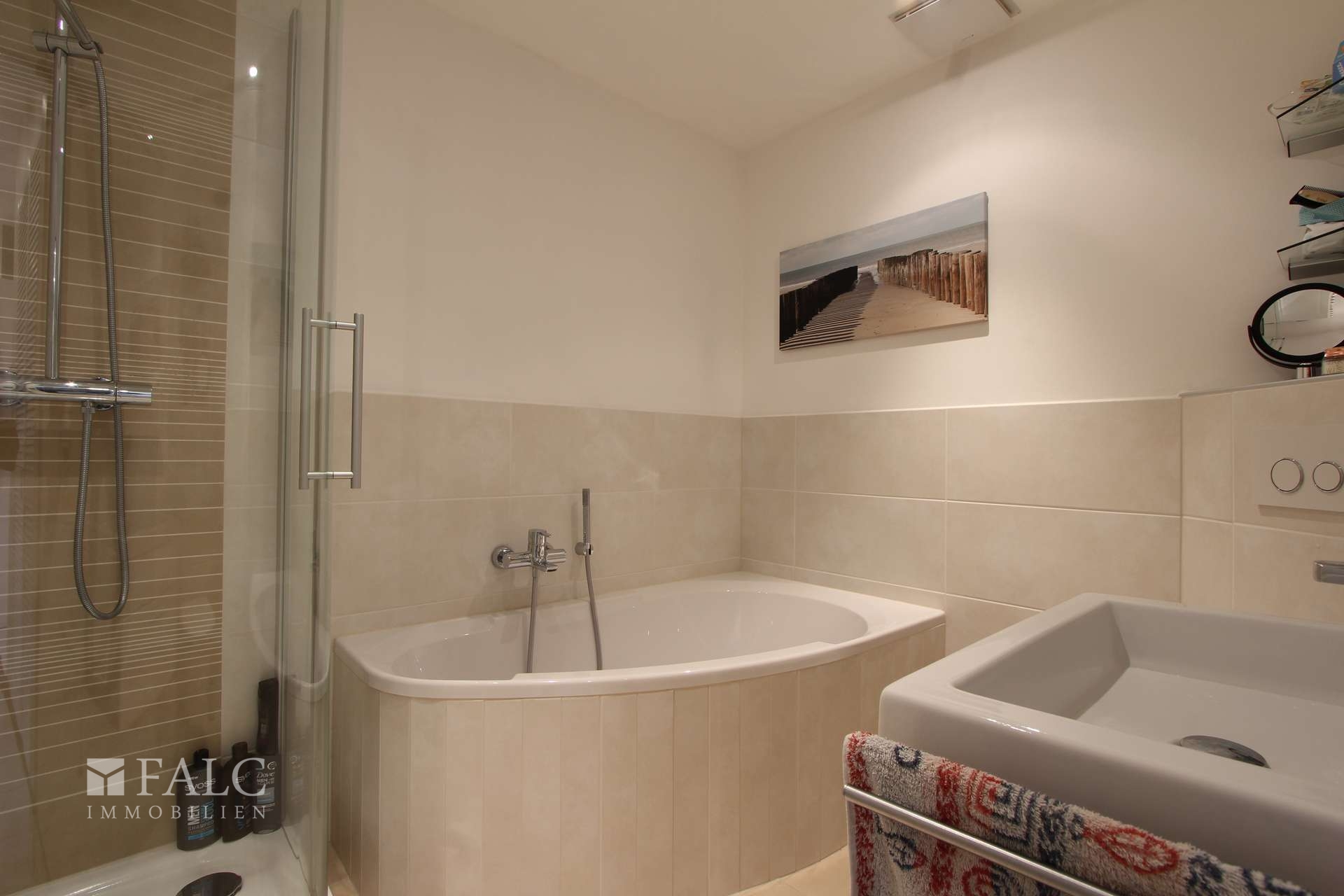 Die Böden im Wohn-Esszimmer sowie in den beiden Schlafzimmern sind mit Laminat belegt. Der Empfangsbereich, die Küche und das Gäste WC sind hell und pflegeleicht gefliest. Das Familienbad mit Dusche, Badewanne, Waschtisch und WC ist ebenfalls hell und sehr zeitgemäß gestaltet.