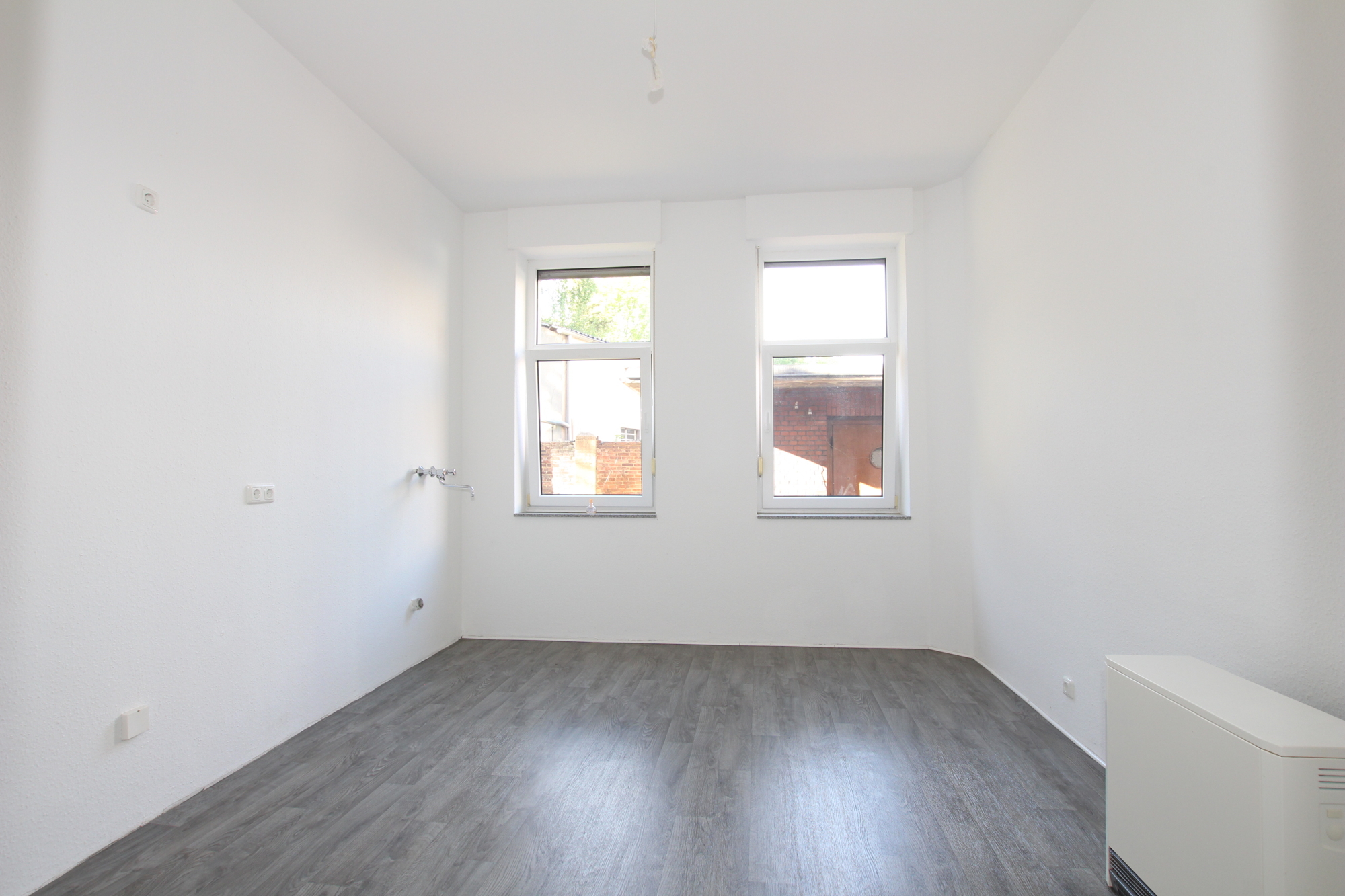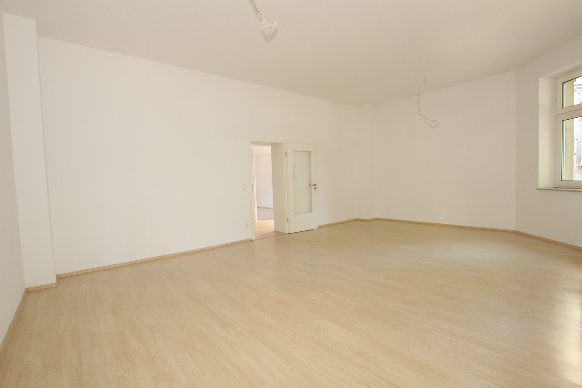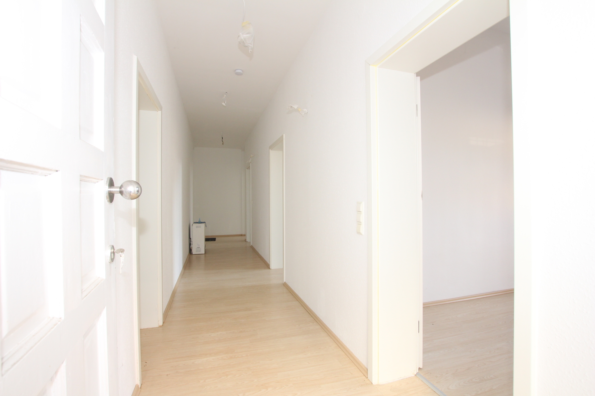 Beim Betreten der Wohnung gelangen Sie in den langen, lichtdurchfluteten Flur, von dem aus alle Zimmer bequem erreichbar sind. Besonders hervorzuheben ist das große, helle Wohnzimmer, das vielseitig nutzbar ist und Ihnen die Möglichkeit bietet, es ganz nach Ihren individuellen Vorstellungen zu gestalten.