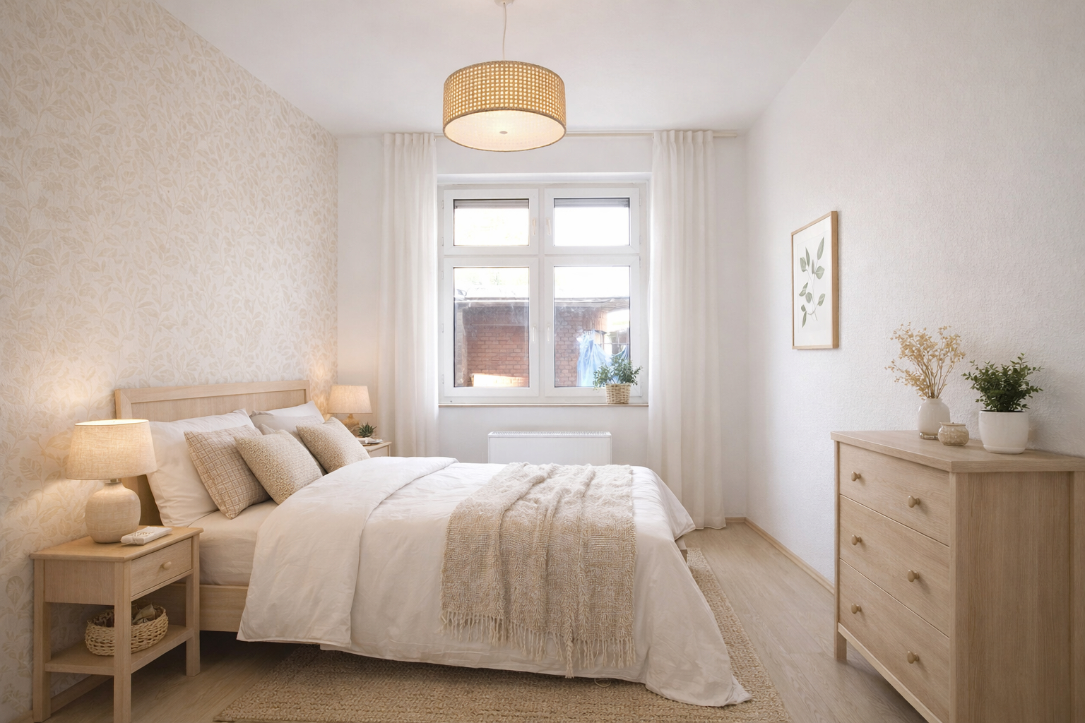 Gegenüber befindet sich das Schlafzimmer, welches eine Rückzugsmöglichkeit für erholsame Nächte bietet.
