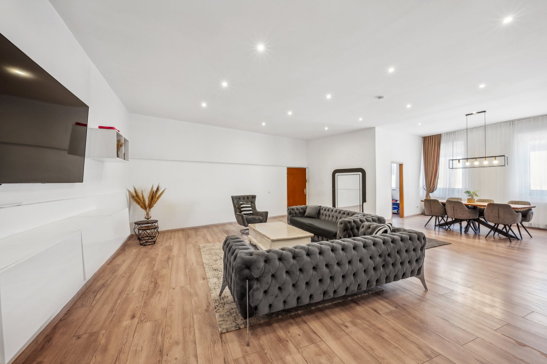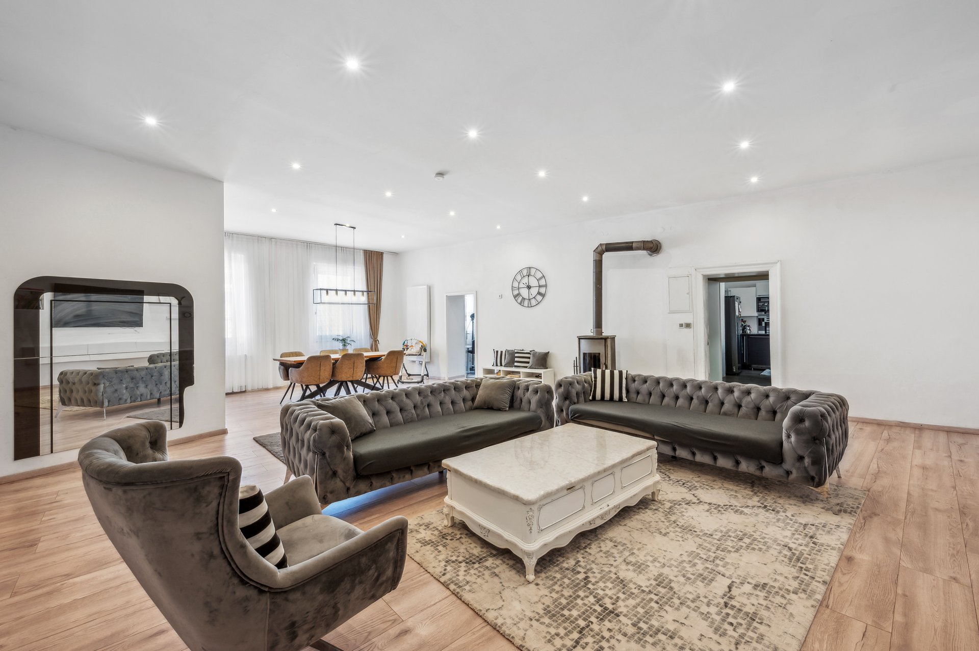 -WE1 im UG mit 3 Zimmern und 79,34 m² Wohnfläche -WE2 im EG mit 5 Zimmern und 205,60 m² Wohnfläche -WE3 im ZG mit 3 Zimmern und 72,60 m² Wohnfläche -WE4 im OG mit 4 Zimmern und 105,84 m² Wohnfläche Gesamtwohnfläche ca, 465,00 m²