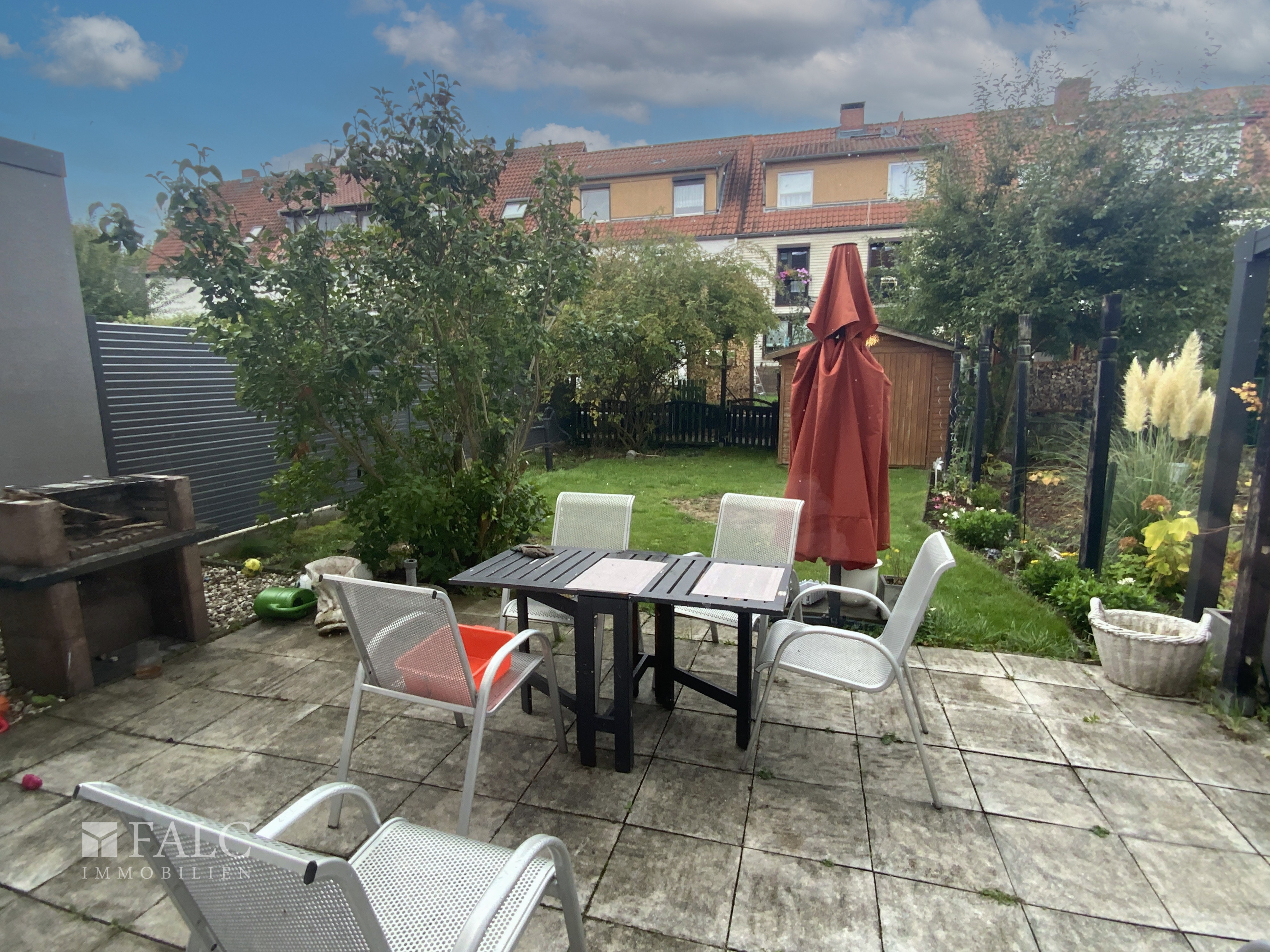 Mit insgesamt 5 Zimmern und einem Vollkeller ist das Platzangebot mehr als ausreichend. Eine gemütliche Terrasse und der gepflegte Garten mit einer Holzhütte befinden sich in westlicher Ausrichtung.