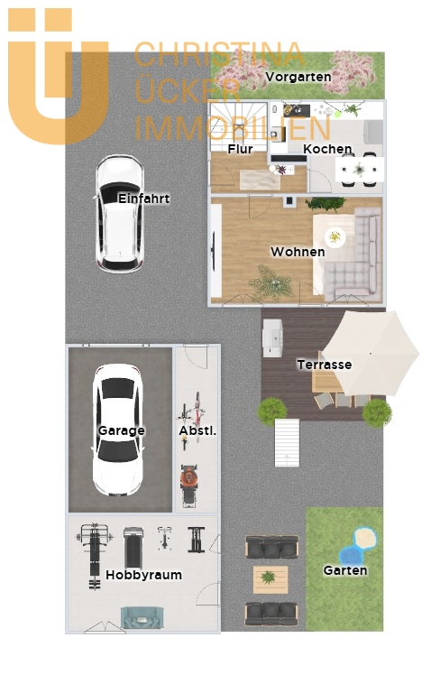 Abgerundet wird das Haus durch eine Garage, an die im Garten ein Hobbyraum anschließt – vielseitig nutzbar, etwa für den Hobby-Handwerker, als Partyraum oder zusätzliche Stauraum.