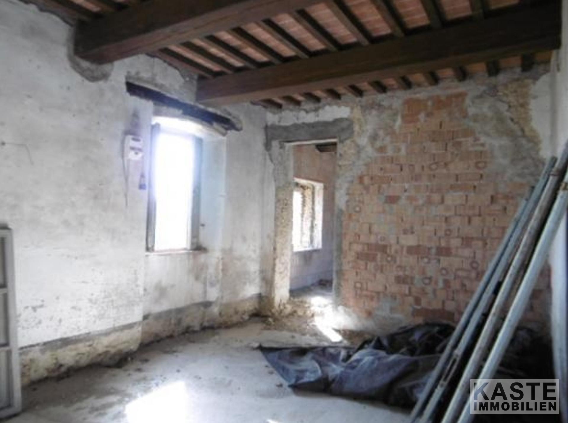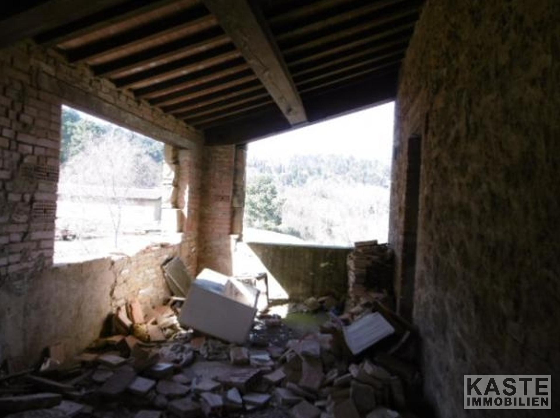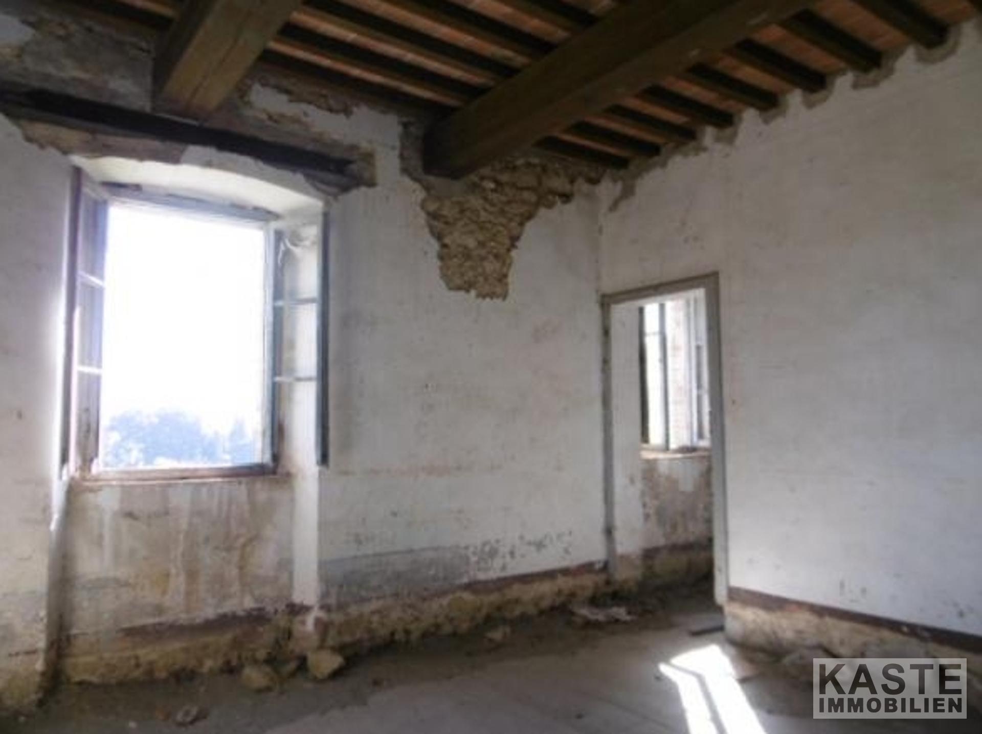 Hauptgebäude: - 350 m² Wohnfläche auf 3 Etagen - Teilweise restauriert - Originale, gut erhaltene alte Treppe - Potenziell 7 Schlafzimmer und 8 Badezimmer - Restaurierung mit typisch toskanischen Materialien (Dachziegel, Decken mit Holzbalken) - Innenwände derzeit unverputzt