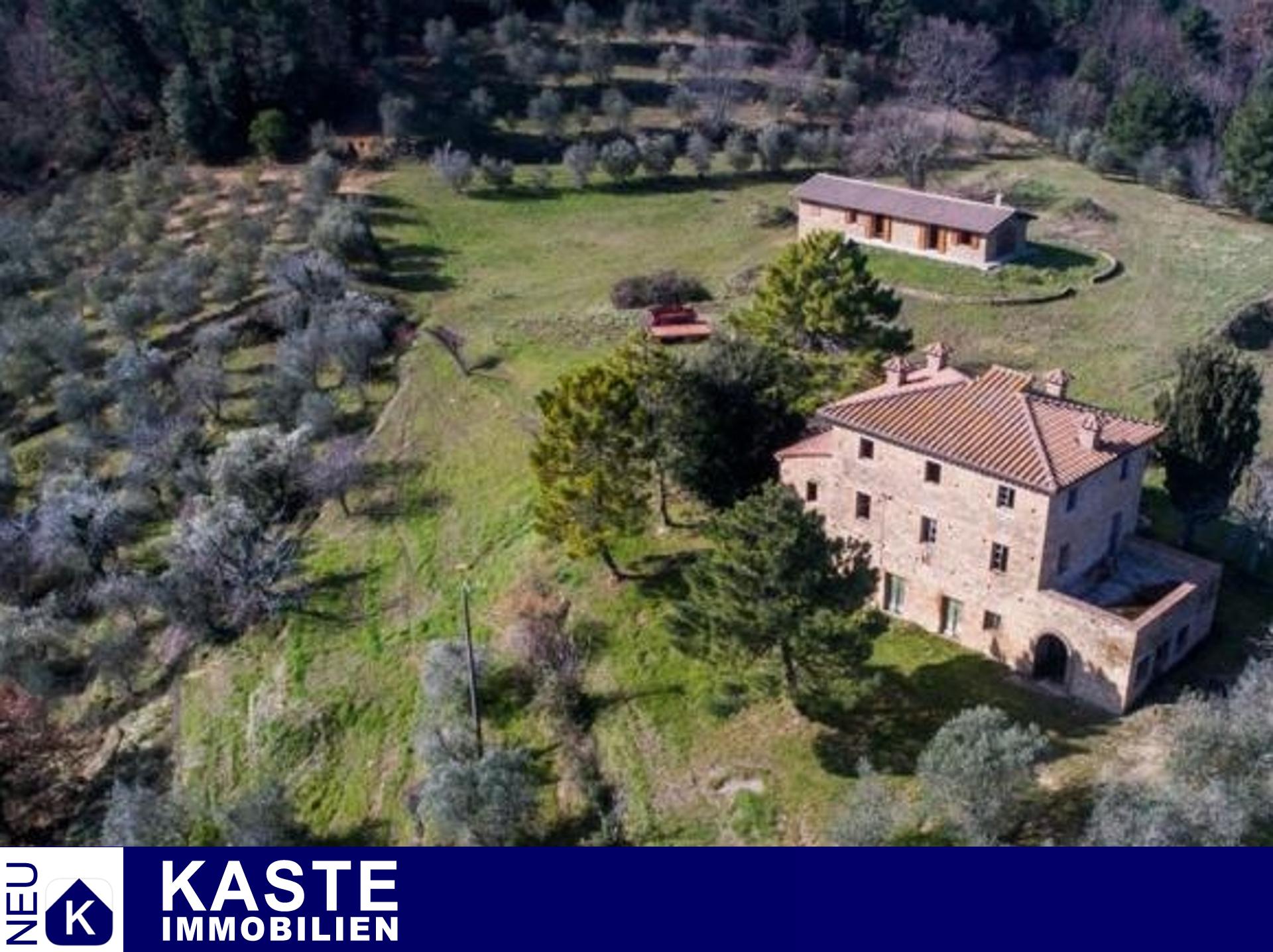 - Vermietungsservice möglich (modular anpassbar) - Online Besichtigung möglich - Großes Grundstück mit 100.000 m² Fläche - Ca. 1.000 Olivenbäume in Produktion - Zufahrt über eine gut erhaltene, kurze Schotterstraße, gesäumt von Zypressen und Olivenbäumen - Lage in einer der besten Positionen in Rivalto: dominant und sehr panoramisch