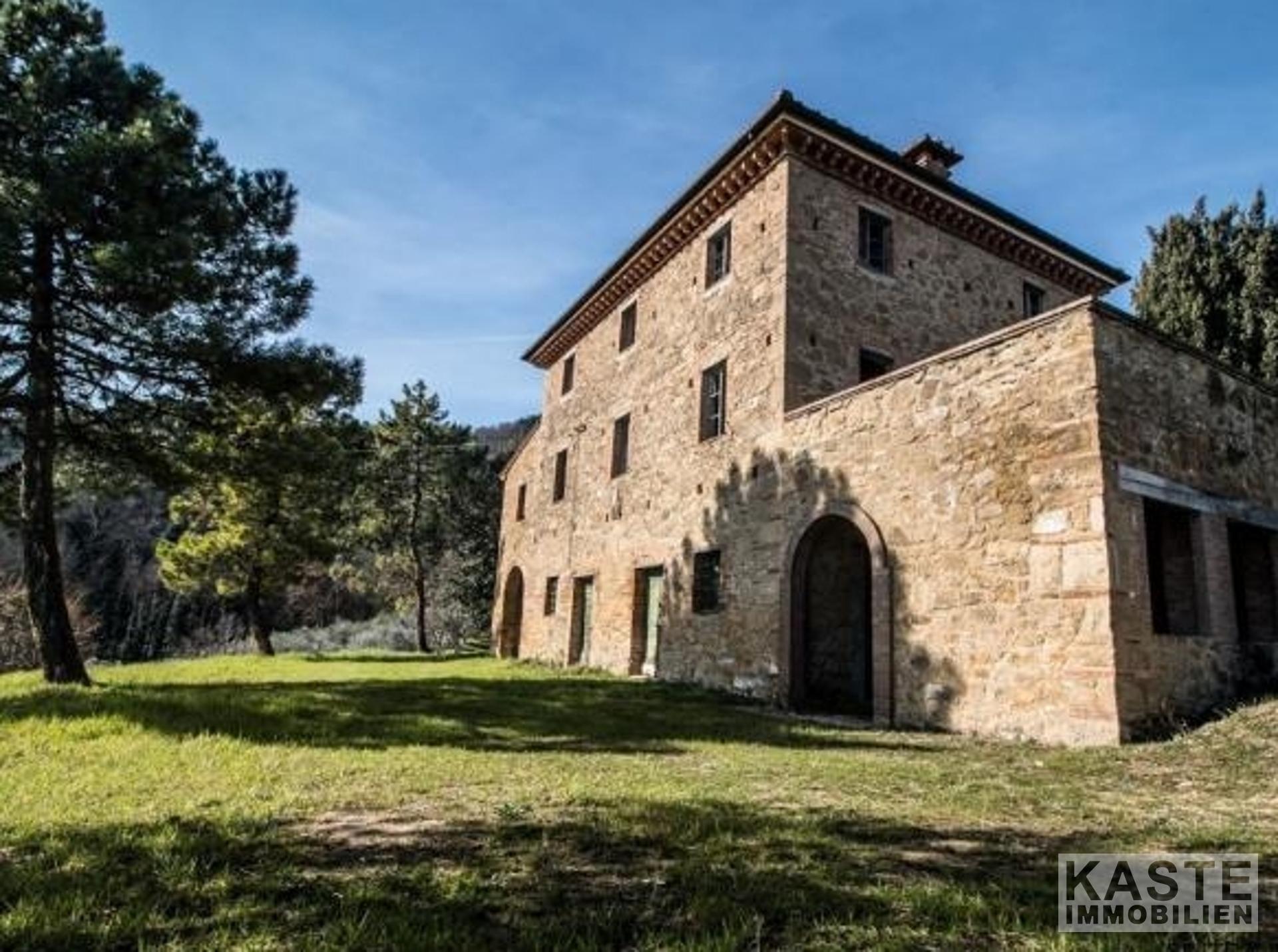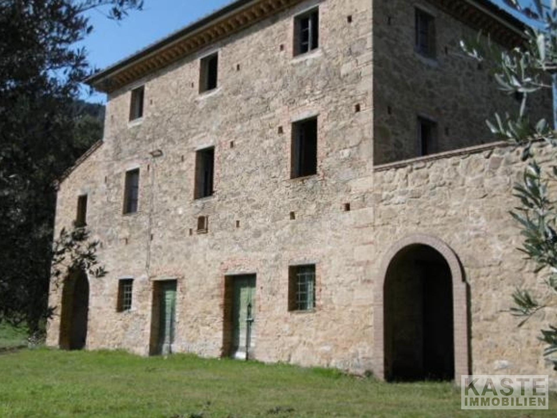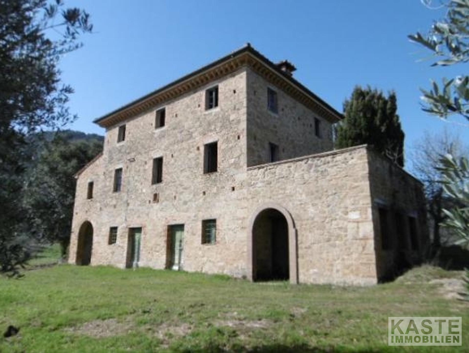 Das Hauptgebäude Mit einer Fläche von 350 m² verteilt auf drei Etagen wurde dieses Gebäude teilweise restauriert. Die originale alte Treppe, die sich in einem guten Zustand befindet, verleiht dem Haus seinen authentischen Charme. Es bietet Platz für bis zu sieben Schlafzimmer und acht Bäder, was es ideal für eine großzügige Wohnnutzung oder auch eine touristische Nutzung macht. Traditionelle toskanische Materialien wie Dachziegel und Decken mit Holzbalken wurden bei der Restaurierung verwendet, wodurch der ursprüngliche Charakter bewahrt wurde. Die Innenwände sind aktuell unverputzt und bieten Spielraum für individuelle Gestaltung.
