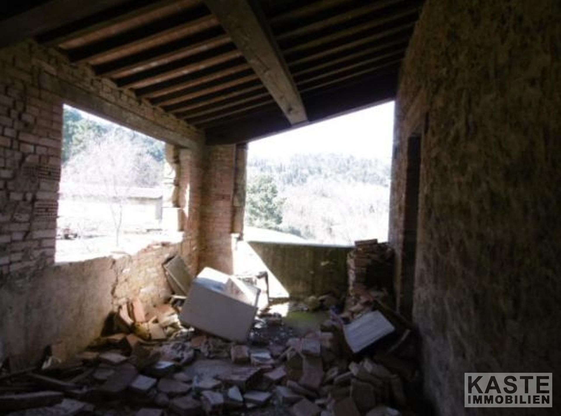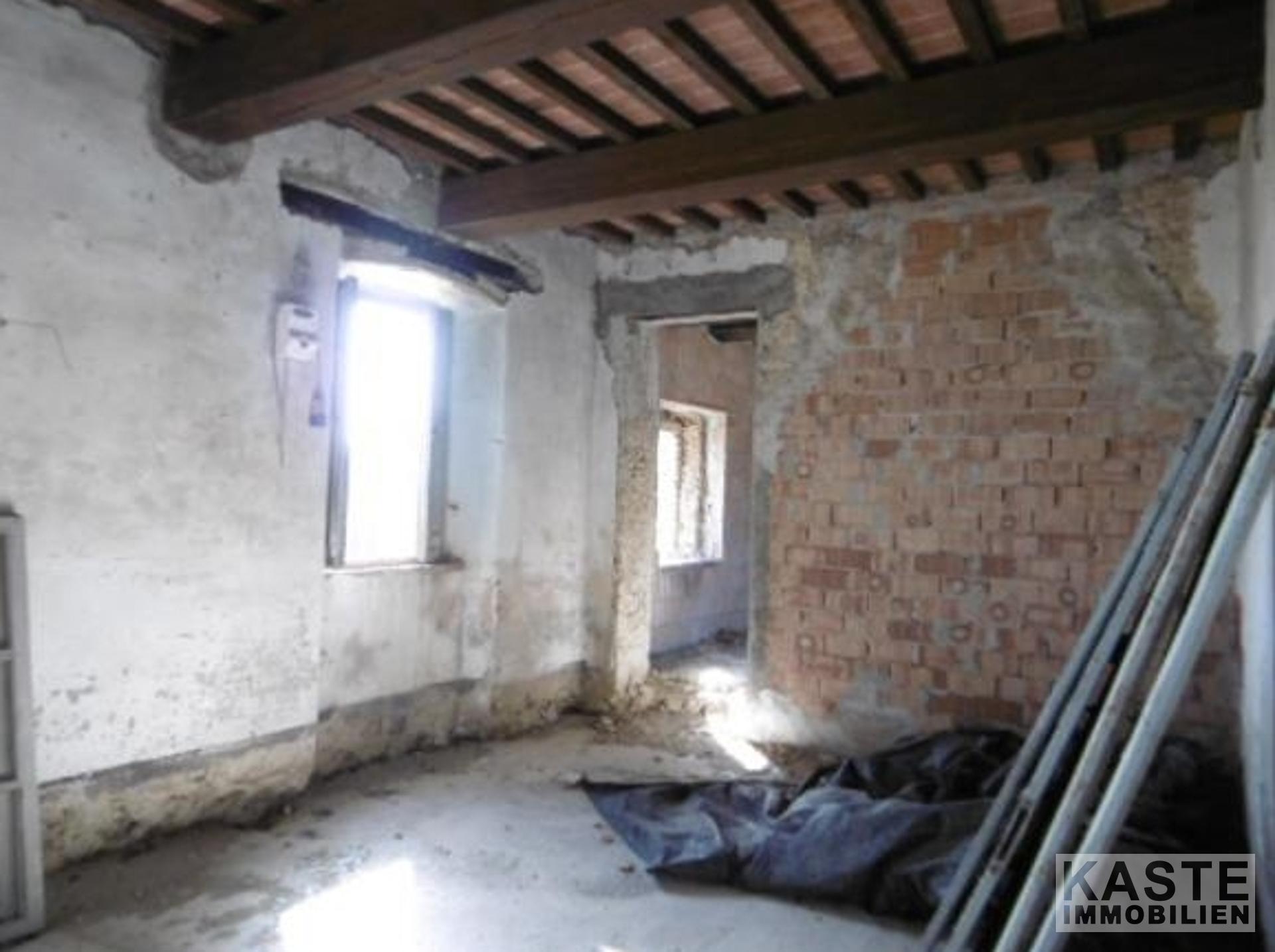 Hauptgebäude: - 350 m² Wohnfläche auf 3 Etagen - Teilweise restauriert - Originale, gut erhaltene alte Treppe - Potenziell 7 Schlafzimmer und 8 Badezimmer - Restaurierung mit typisch toskanischen Materialien (Dachziegel, Decken mit Holzbalken) - Innenwände derzeit unverputzt
