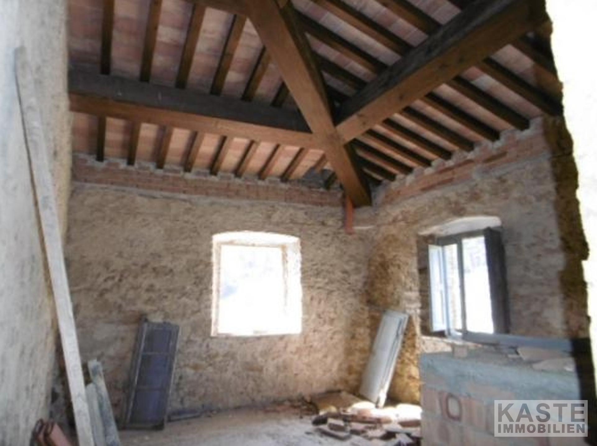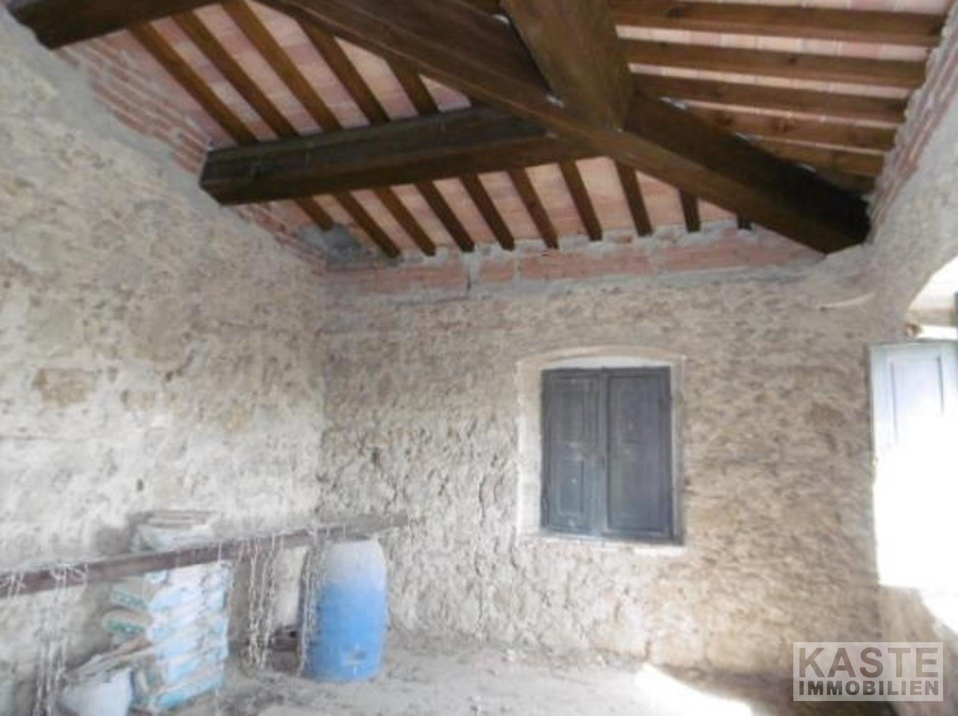 Hauptgebäude: - 350 m² Wohnfläche auf 3 Etagen - Teilweise restauriert - Originale, gut erhaltene alte Treppe - Potenziell 7 Schlafzimmer und 8 Badezimmer - Restaurierung mit typisch toskanischen Materialien (Dachziegel, Decken mit Holzbalken) - Innenwände derzeit unverputzt
