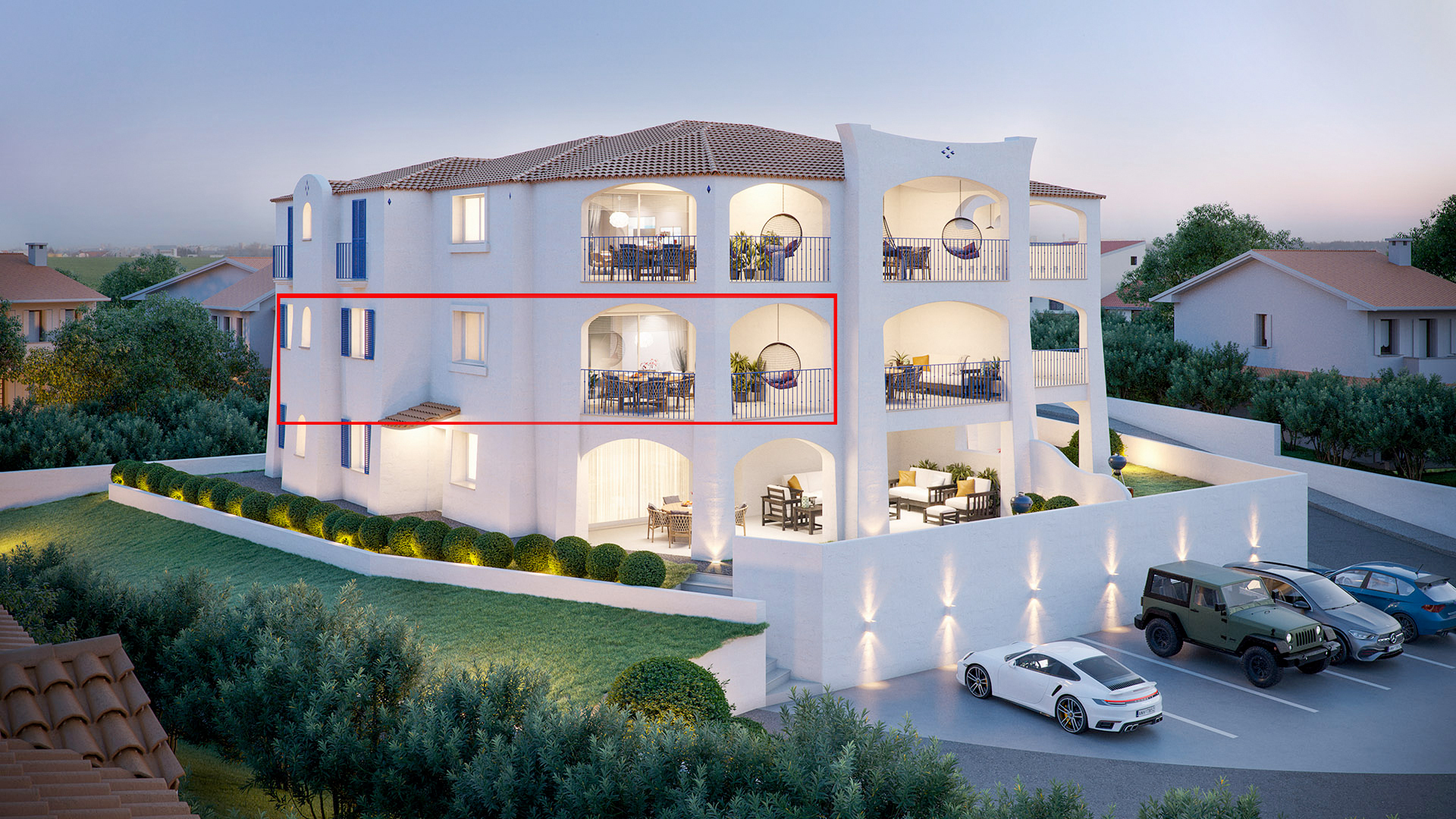 Dieses exklusive Neubau-Apartment mit Sonnenterrassen und Meerblick im Erstbezug bietet Ihnen hochwertigen Ausstattungsdetails, sowie eine stilvolle Wohnatmosphäre. Funktionalität trifft hier auf moderne Architektur im mediterran-sardischen Stil. Die großen Glasschiebeelemente mit einer Öffnung von ca. 4,20 m und des raffinierten Designs lassen die Innen- und Außenbereich fließend ineinander übergehen. Das Resultat ist ein unvergleichlich lichtdurchfluteter Wohnbereich mit einer ca. 17,10 qm großen Terrasse.