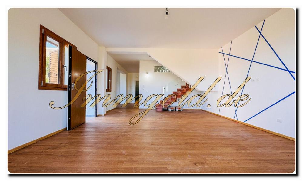Im Inneren strömt durch große Fenster Licht in den Wohnbereich ins Erdgeschoß, wodurch das Tyrrhenische Meer voll zur Geltung kommt. Eine offene Küche neben dem Essbereich ist modern und funktional. Ein Familienbadezimmer ist mit tieffarbigen Fliesen im Jumbo-Format, einer begehbaren Dusche ausgestattet und es gibt zudem einen 15 m² großen Abstellraum. Dank seiner Größe und des natürlichen Lichts sehen wir diesen großzügigen Raum als viertes Schlafzimmer, Spielzimmer oder privates Arbeitszimmer.