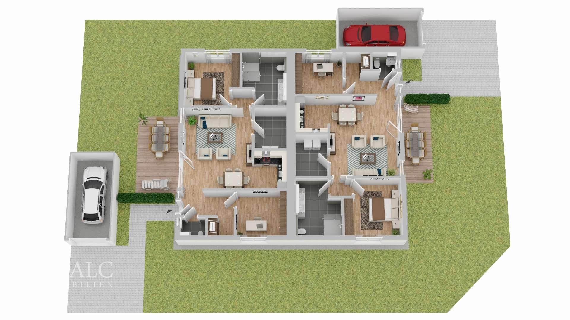 + Fertige Bäder inkl. Badausstattung + Bodendämmung und Estrich + Dezentrale Be- und Entlüftung + Fußbodenbeläge und Innentüren + Wandbearbeitung Q2 oder Q3, Malerarbeiten + Garage oder Carport + Terrassenüberdachungen in verschiedenen Ausführungen