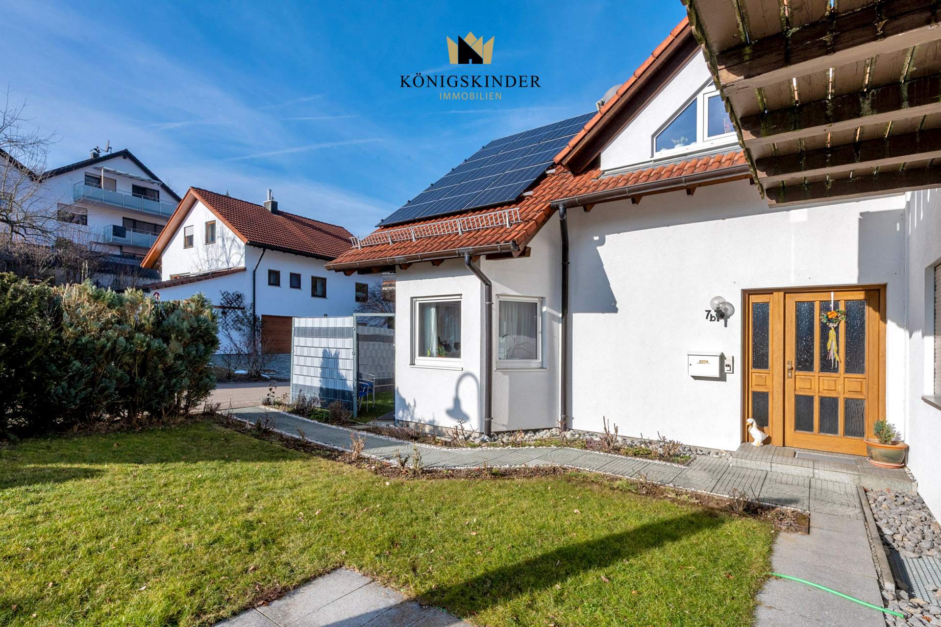 Barrierearmes Einfamilienhaus mit Einliegerwohnung, Garage & moderner Energietechnik – Wohnen mit Zukunft Willkommen in einem Zuhause, das Großzügigkeit, Flexibilität und nachhaltige Technik harmonisch vereint. Dieses attraktive Einfamilienhaus in HAAS-Fertigbauweise (Baujahr 1996) überzeugt durch seine durchdachte Raumaufteilung, barrierearme Elemente und eine separat nutzbare Einliegerwohnung – ideal für Mehrgenerationenwohnen, Homeoffice oder zusätzliche Mieteinnahmen. Bereits beim Betreten spürt man die angenehme Wohnatmosphäre. Der fantastische Wohn-Essbereich mit fast 40 m² bildet das Herzstück des Erdgeschosses. Große Fensterflächen schaffen eine helle, freundliche Umgebung und führen direkt auf die sonnige Terrasse – perfekt für entspannte Stunden im Freien. Ein echtes Highlight ist der ästhetische Kaminofen im Kachelofen-Stil mit gemütlicher Sitzbank. Der neue Einsatz sorgt für wohlige Wärme und ein stilvolles Ambiente. Die hochwertige Wohnküche der Marke NUKO bietet nicht nur viel Platz zum Kochen und Genießen, sondern auch einen direkten Zugang zum Balkon. Ergänzt wird das Erdgeschoss durch: ein modern ausgestattetes Gäste-WC mit Waschtisch, Pissoir und WC sowie ein vielseitig nutzbares Zimmer als Büro, Gäste- oder Hobbyraum Im Obergeschoss erwarten Sie zwei helle Kinderzimmer, ein großzügiges Elternschlafzimmer mit separater Ankleide und Split-Klimaanlage und eine geräumige Diele. Das 2022 erneuerte Tageslichtbad begeistert mit Eckbadewanne, Dusche, Pissoir, WC und Waschtisch – modern, stilvoll und komfortabel. Vom Obergeschoss aus gelangen Sie zudem auf den großzügigen Balkon, der zusätzliche Lebensqualität bietet. Die Einliegerwohnung mit ca. 30 m² lässt sich mit eigenem Eingang realisieren und verfügt über ein barrierearmes Bad. Ideal für Angehörige, Gäste, Pflegepersonal oder zur Vermietung. Ausstattung & Technik – nachhaltig in die Zukunft Dieses Haus überzeugt nicht nur optisch, sondern auch technisch: Echtholzparkett (8 mm Eiche) in den Wohnräumen, Fassade neu gestrichen (2017), zwei Split-Klimaanlagen für angenehmes Raumklima, Moderne 12 kW Wärmepumpe (2025) und Gaszentralheizung kombiniert mit Photovoltaikanlage (9 Module) und 500-Liter-Pufferspeicher, Wallbox (2023) mit PV-Steuerung, Regenwasserzisterne mit 16.000 Litern, Dach mit Zwischensparrendämmung, das Untergeschoss wurde mit dem innovativen ISOTON-Bausystem errichtet – eine effiziente, langlebige Alternative zu klassischem Mauerwerk. Die großzügige Garage (10,2 × 3,6 m) mit elektrischem Torantrieb und Anschlussraum bietet reichlich Platz für Ihre Fahrzeuge. Hof, Garten und Gerätehütte werden gemäß WEG-Anteil genutzt. Ein gepflegtes, vielseitiges Einfamilienhaus mit Einliegerwohnung, moderner Energietechnik und hohem Wohnkomfort. Ob Familie, Mehrgenerationenwohnen oder zukunftssichere Investition – hier finden Sie ein Zuhause, das heute begeistert und morgen überzeugt.