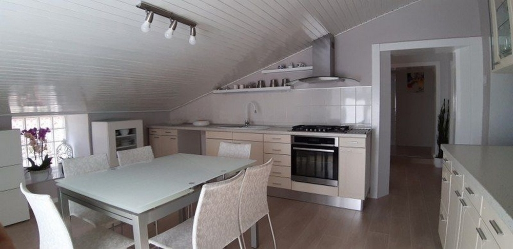 Dieses Dachgeschoss Appartement befindet sich in Pula in Istrien und hat eine Wohnfläche von ca. 107 m², zudem gehört noch ein kleines Appartement mit einer Fläche von ca. 24 m² dazu, welche sich im Garten befindet. Beide Wohnungen sind durch Garten und Terrassen miteinander verbunden und werden zusammen verkauft.