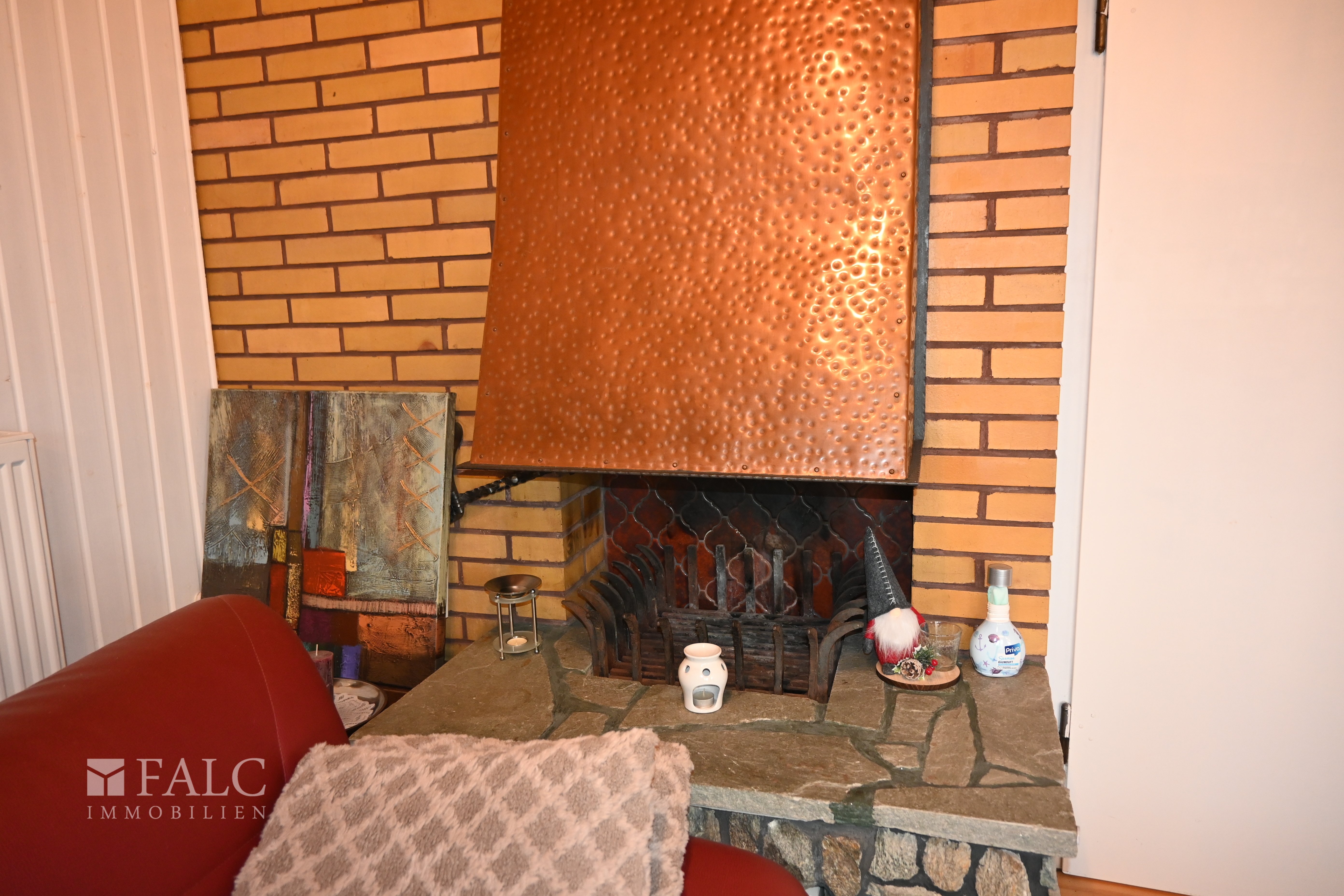 Beim Betreten des Hauses empfängt Sie ein einladender Flur, der direkt in den lichtdurchfluteten Wohnbereich führt. Die großen Fenster lassen viel Tageslicht herein und schaffen eine angenehme Atmosphäre. Der Wohnbereich ist mit einem Kamin ausgestattet, der an kühlen Abenden für wohlige Wärme sorgt. Das Wohnzimmer hat einen direkten Zugang zum Balkon.