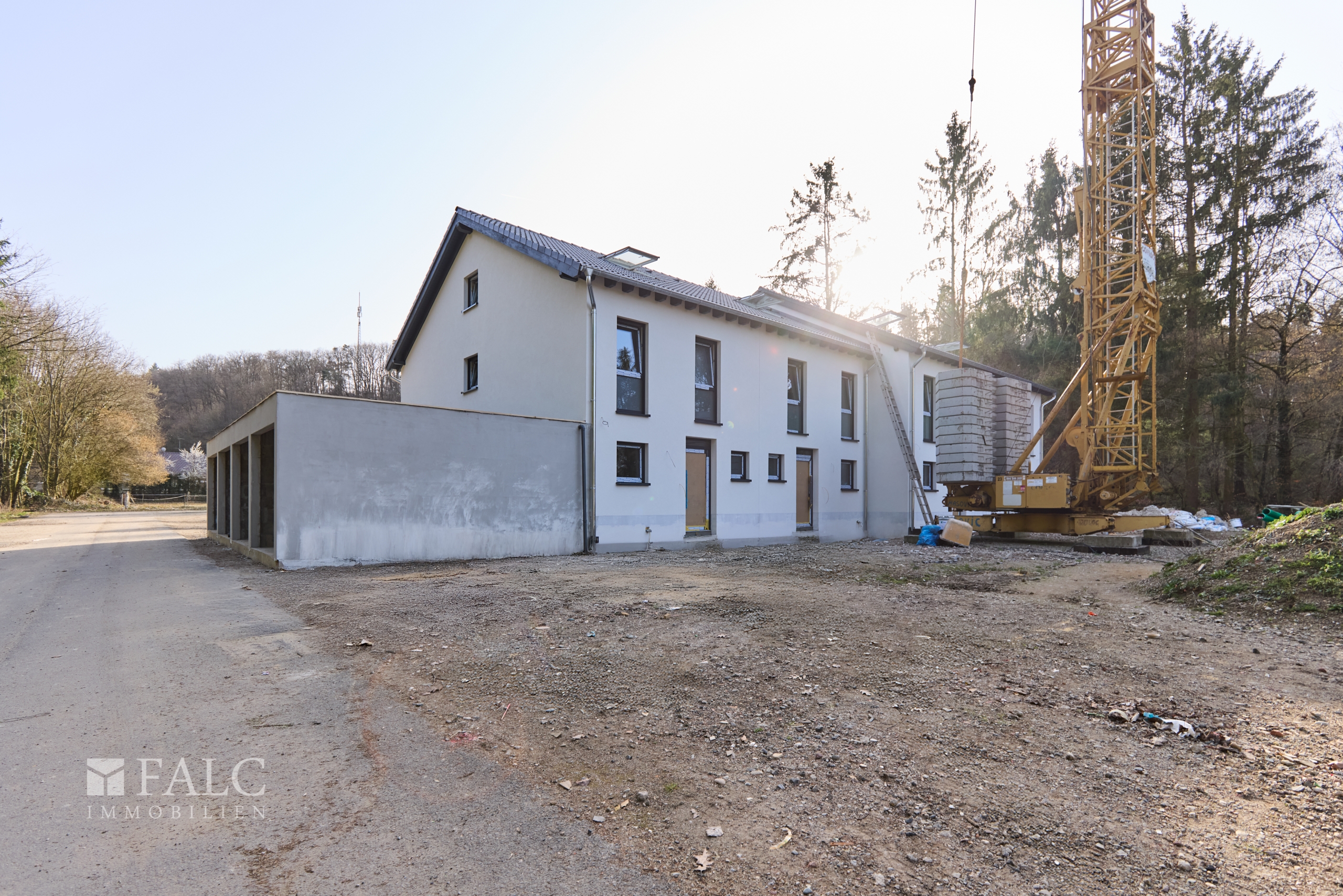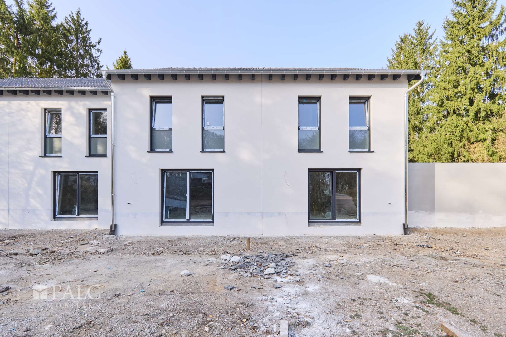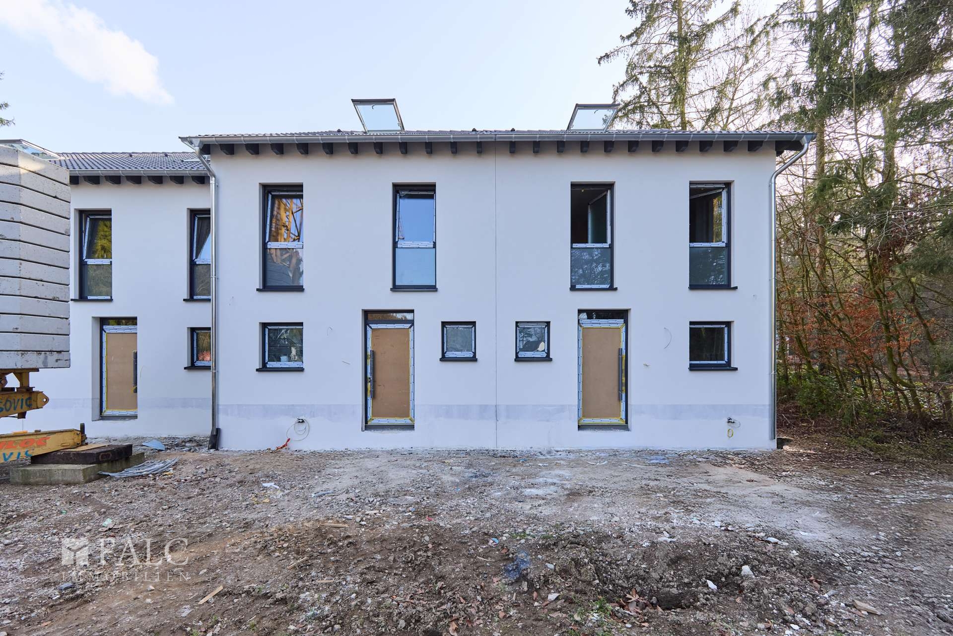 Nach erteilter Baugenehmigung Ende 2024 sind die Arbeiten nun in vollem Gange und der Rohbau inklusive Außenputz und Fenster bereits abgeschlossen.