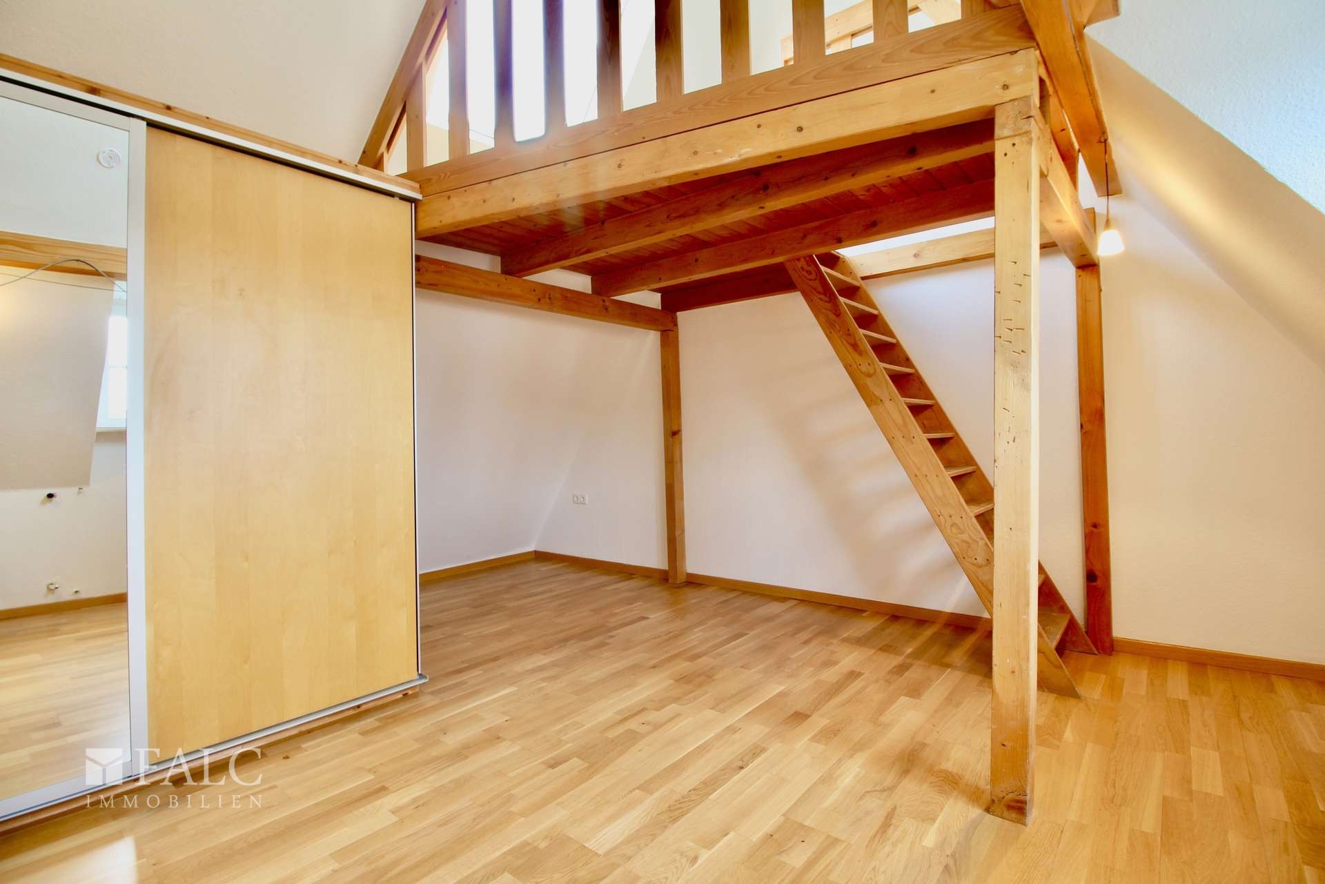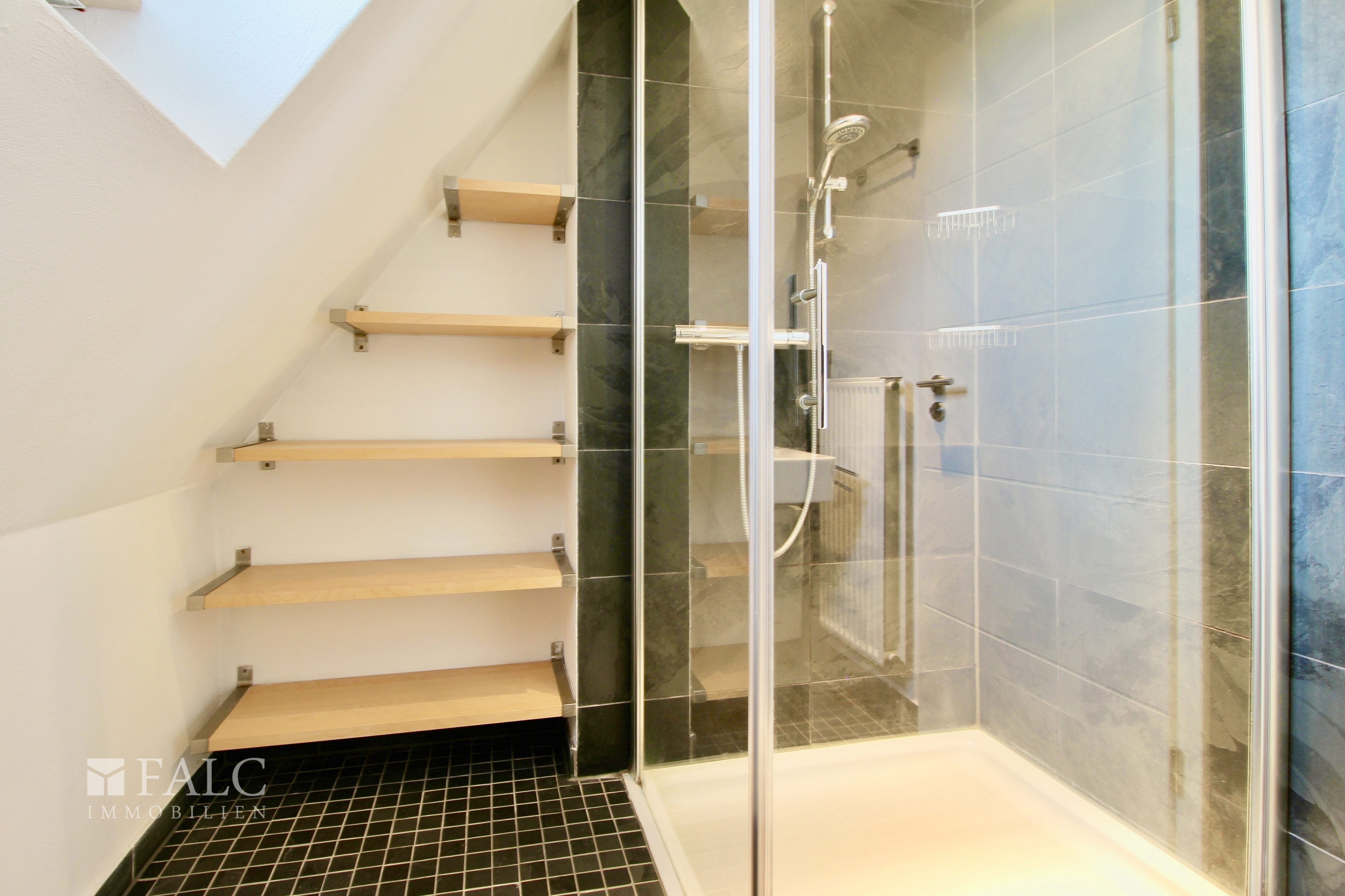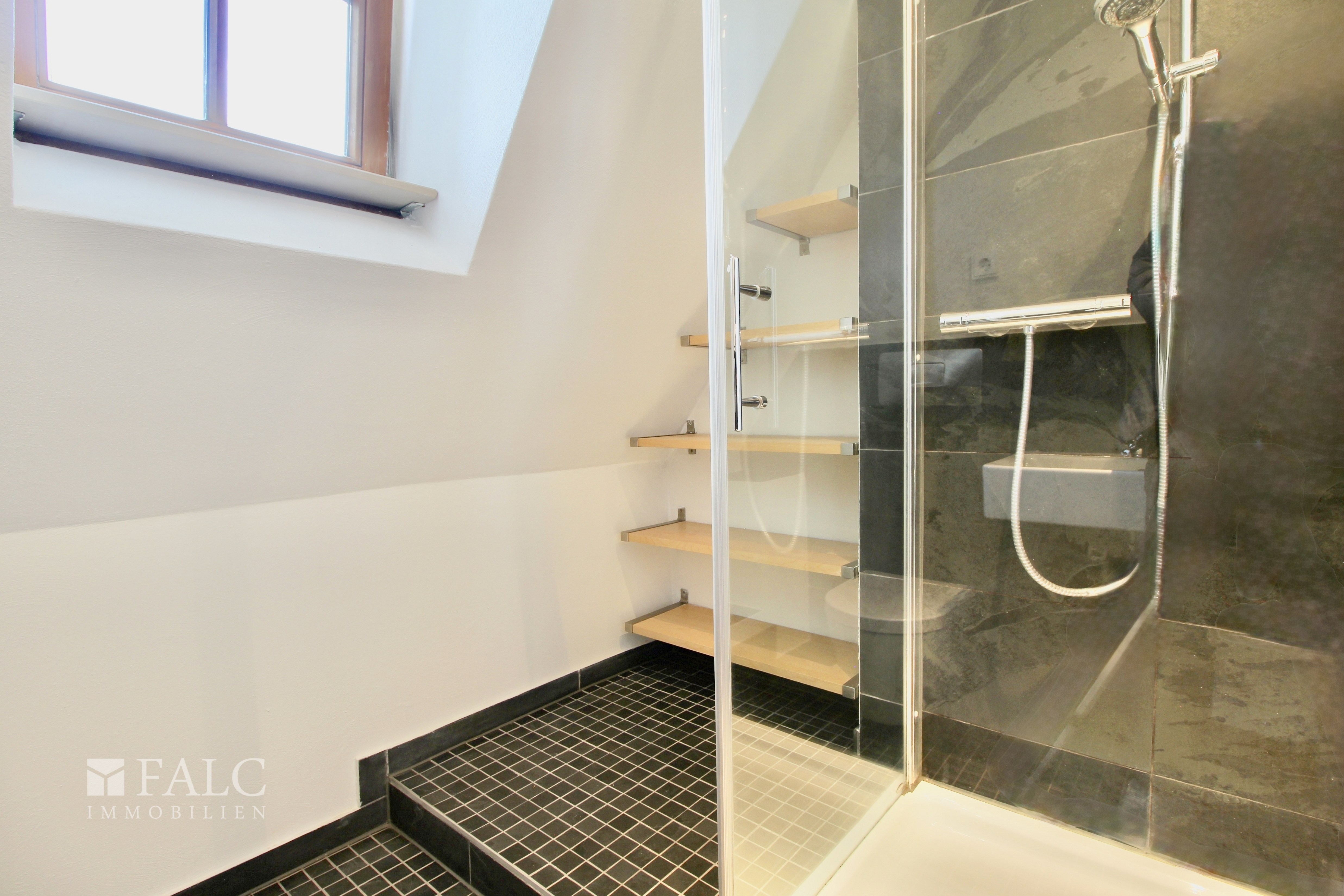 Das Hauptschlafzimmer im Dachgeschoss bietet Zugang zu einem privaten Balkon, der zum Entspannen einlädt. Ein weiteres Zimmer auf dieser Etage eignet sich ideal als Kinderzimmer oder Büro. Das moderne Badezimmer ist mit einer Dusche ausgestattet. Im Spitzgiebel befindet sich über eine Auszugstreppe ausreichend Stauraum.