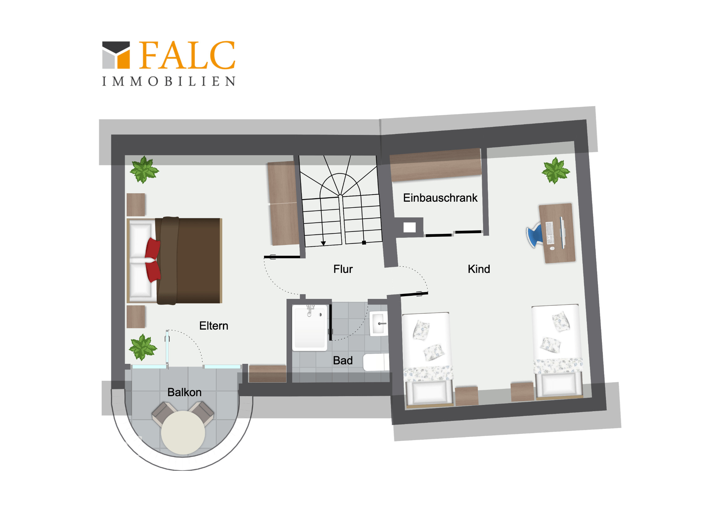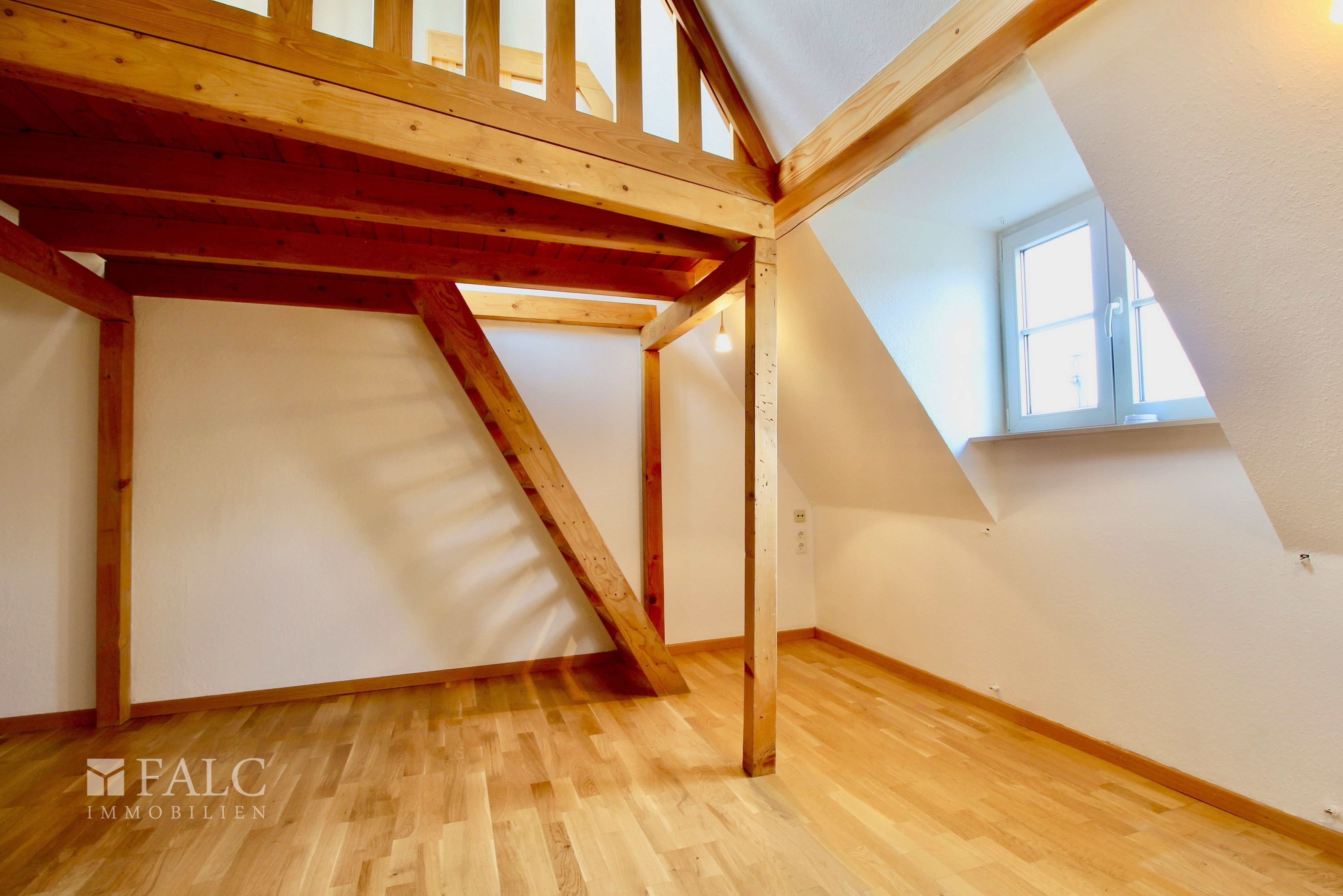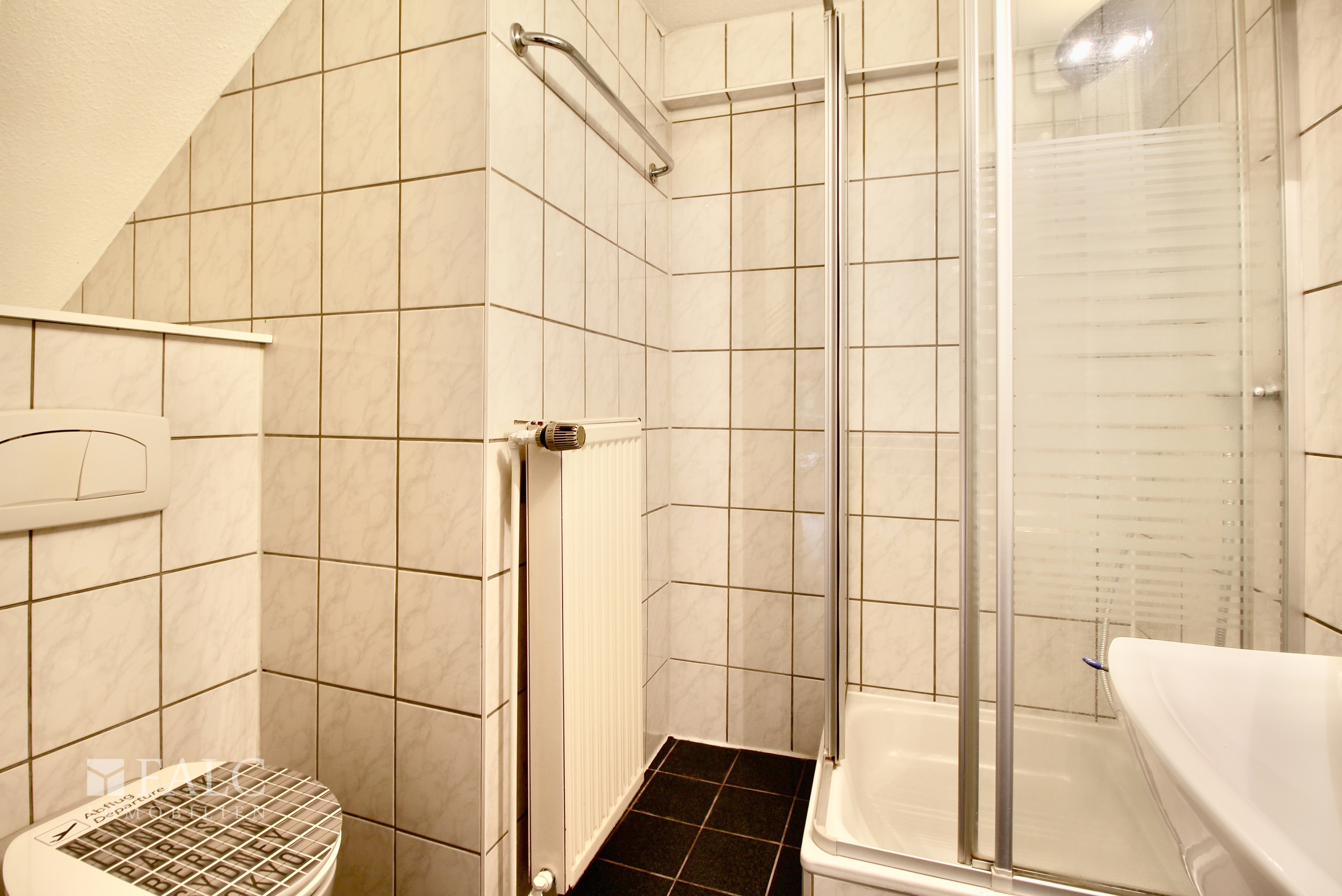 Das Hauptschlafzimmer im Dachgeschoss bietet Zugang zu einem privaten Balkon, der zum Entspannen einlädt. Ein weiteres Zimmer auf dieser Etage eignet sich ideal als Kinderzimmer oder Büro. Das moderne Badezimmer ist mit einer Dusche ausgestattet. Im Spitzgiebel befindet sich über eine Auszugstreppe ausreichend Stauraum.