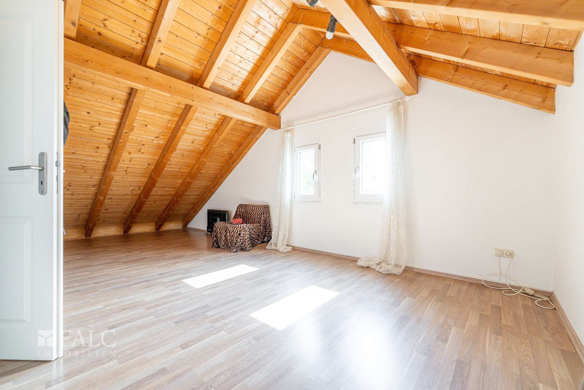 Außerdem gibt es einen kleinen Raum unter der Dachschräge, der als Büro oder Bügelzimmer genutzt werden kann. Im Dachgeschoss befindet sich auch die Gastherme.