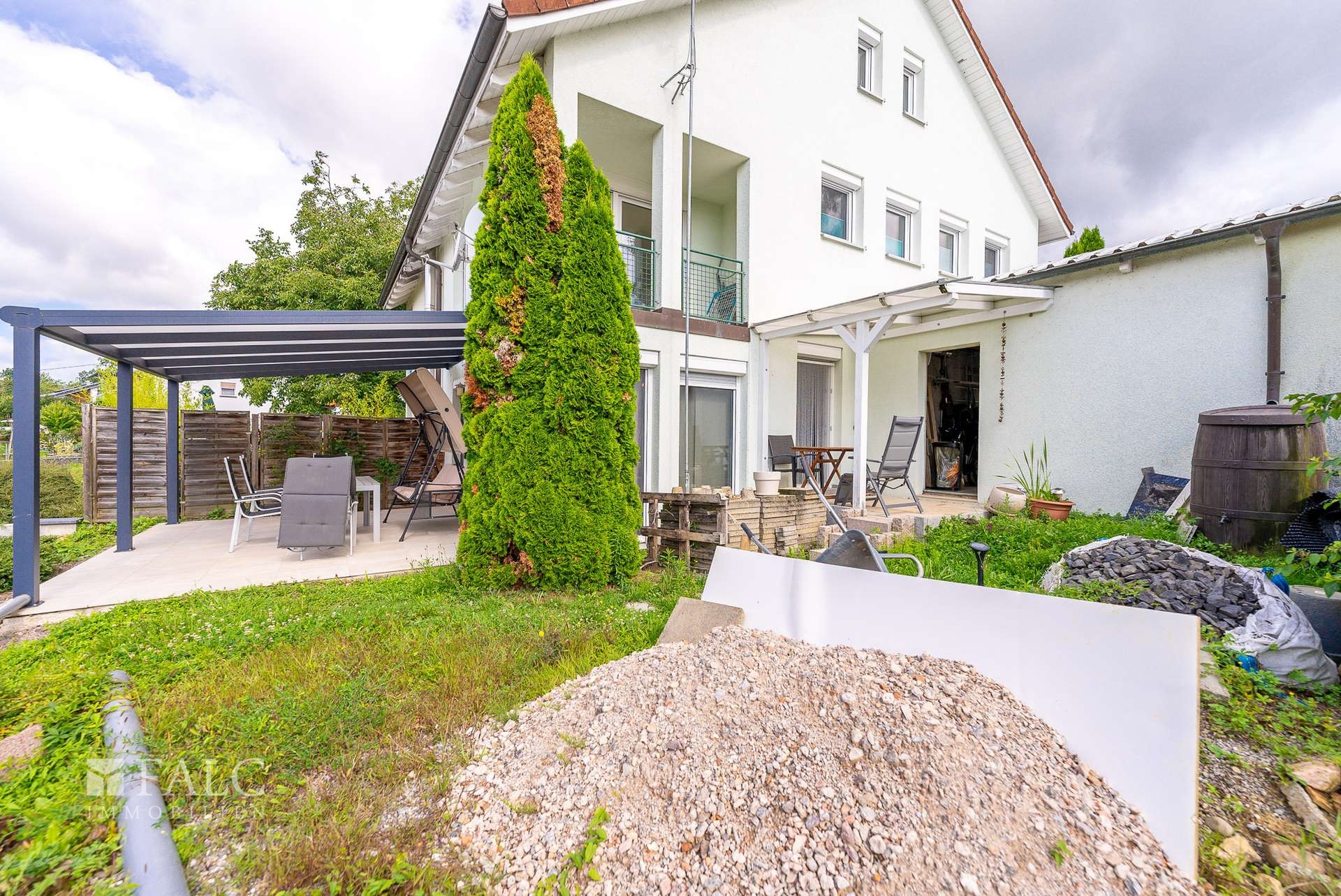 Vom Wohnbereich gelangen Sie auf die großzügige, von der Sonne verwöhnte Terrrasse. Hier können Sie den Grill anwerfen und den Abend mit einem guten Tropfen ausklingen lassen.