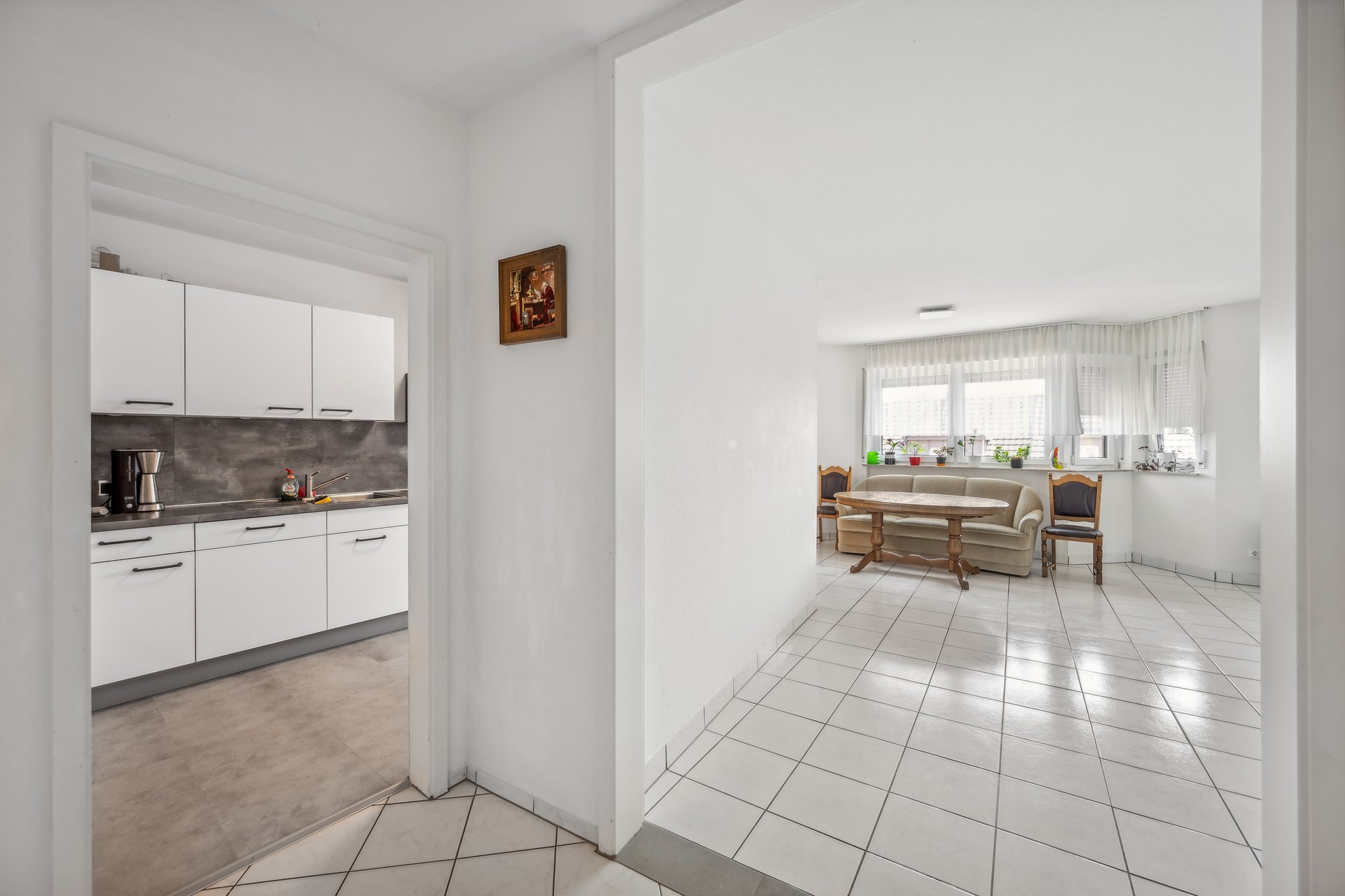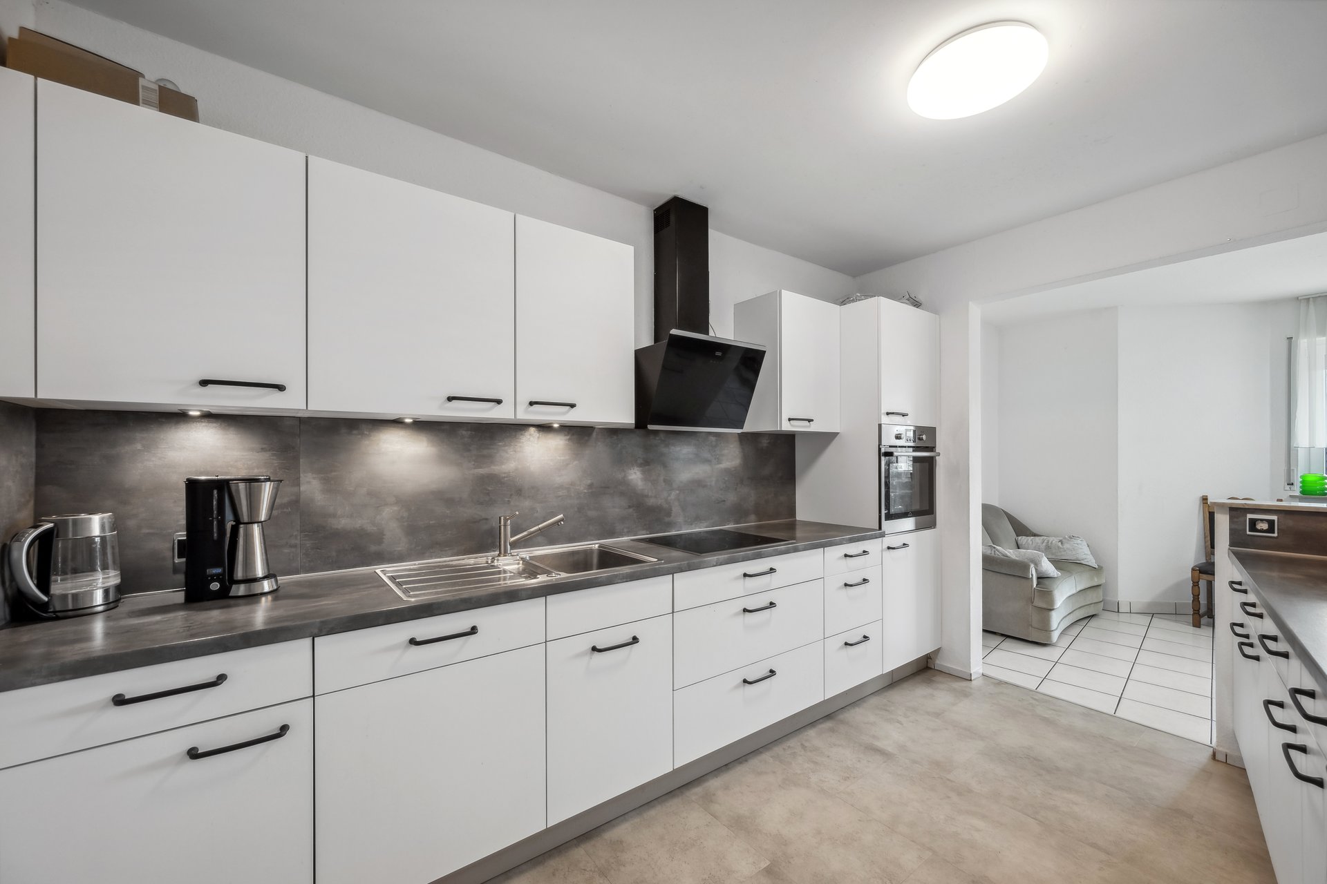 Funktionalität trifft Charme: Ihre Küche und das Bad Die moderne Einbauküche ist voll ausgestattet und lässt keine Wünsche offen: Ein Cerankochfeld, ein Ofen und alle wichtigen Geräte sind bereits vorhanden, sodass Sie sofort loslegen können. Das Badezimmer ist klassisch mit einer Badewanne und einem Waschbecken ausgestattet, während das separate WC mit eigenem Waschbecken besonders bei Besuchern punktet. In Küche, Bad und WC sind die Wände und Böden pflegeleicht gefliest.