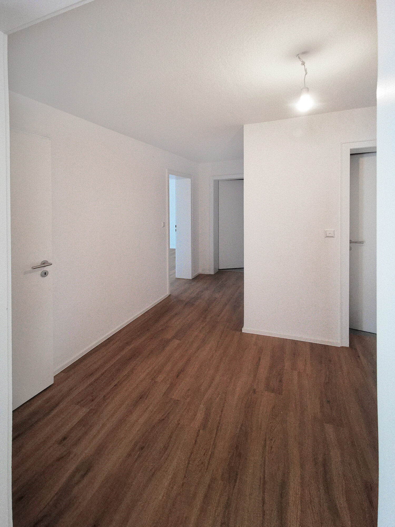 Durch einen hellen Eingangsbereich, haben Sie Zutritt zum Wohnzimmer sowie zur Küche und den zwei weiteren räume.