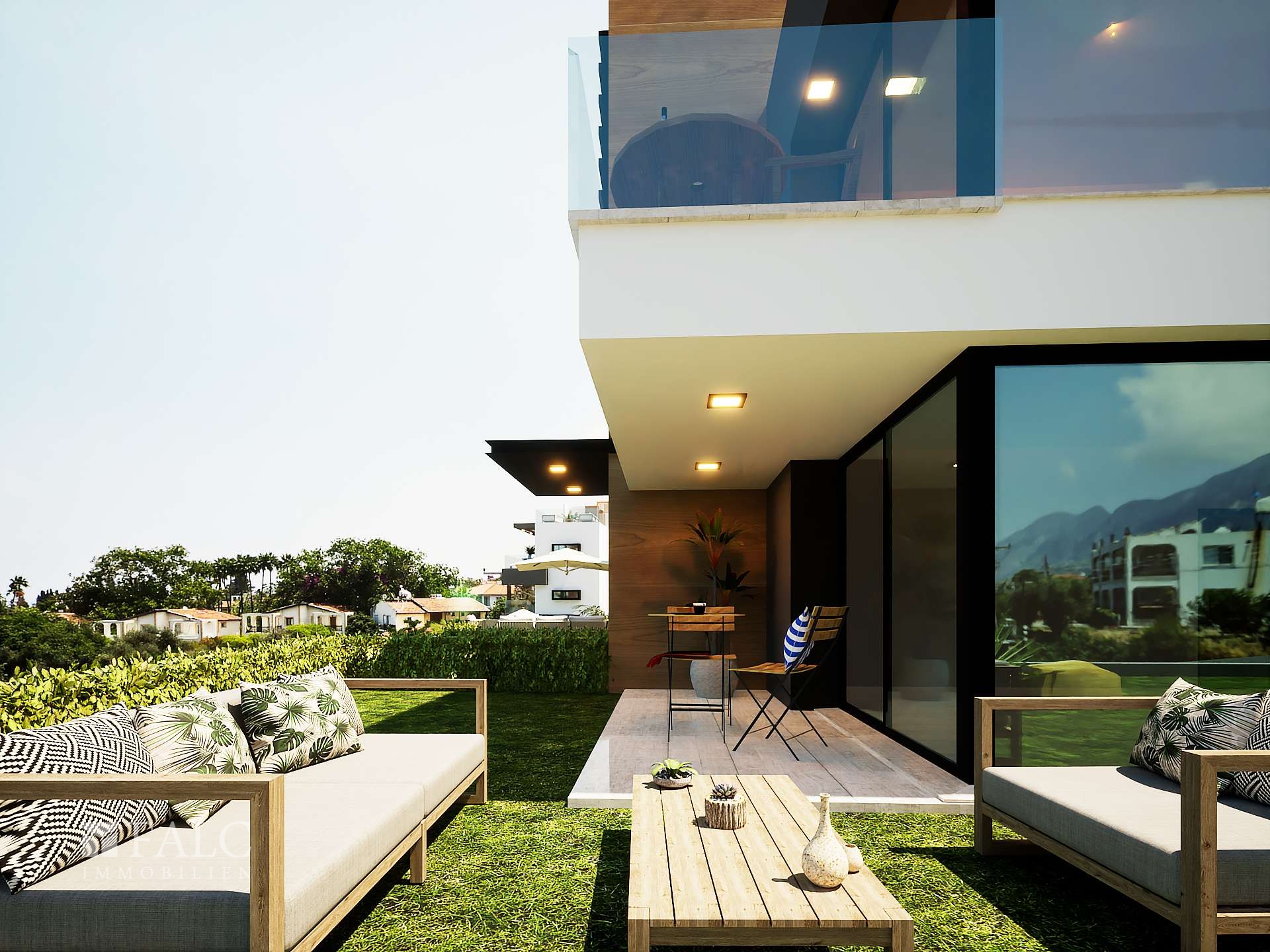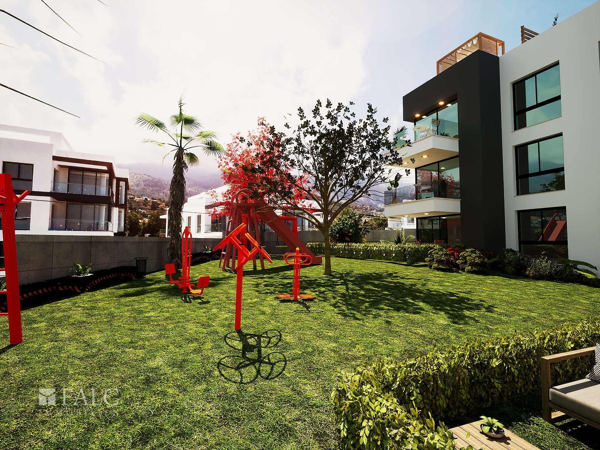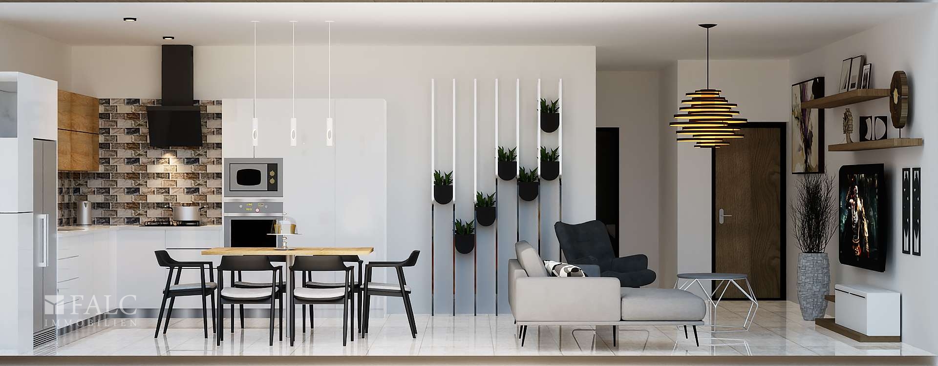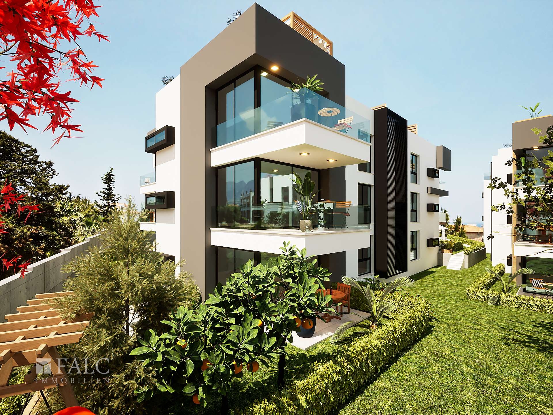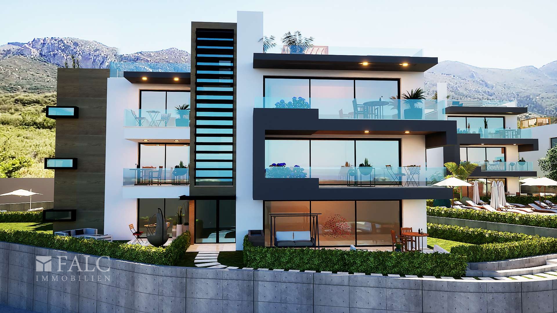 Zum Verkauf steht eine luxuriöse Etagenwohnung in Alsancak, Kyrenia. Die Wohnung befindet sich in einem neu erbauten Gebäude aus massivem Material und wird im Jahr 2024 fertiggestellt. Der Erstbezug garantiert einen makellosen Zustand.
