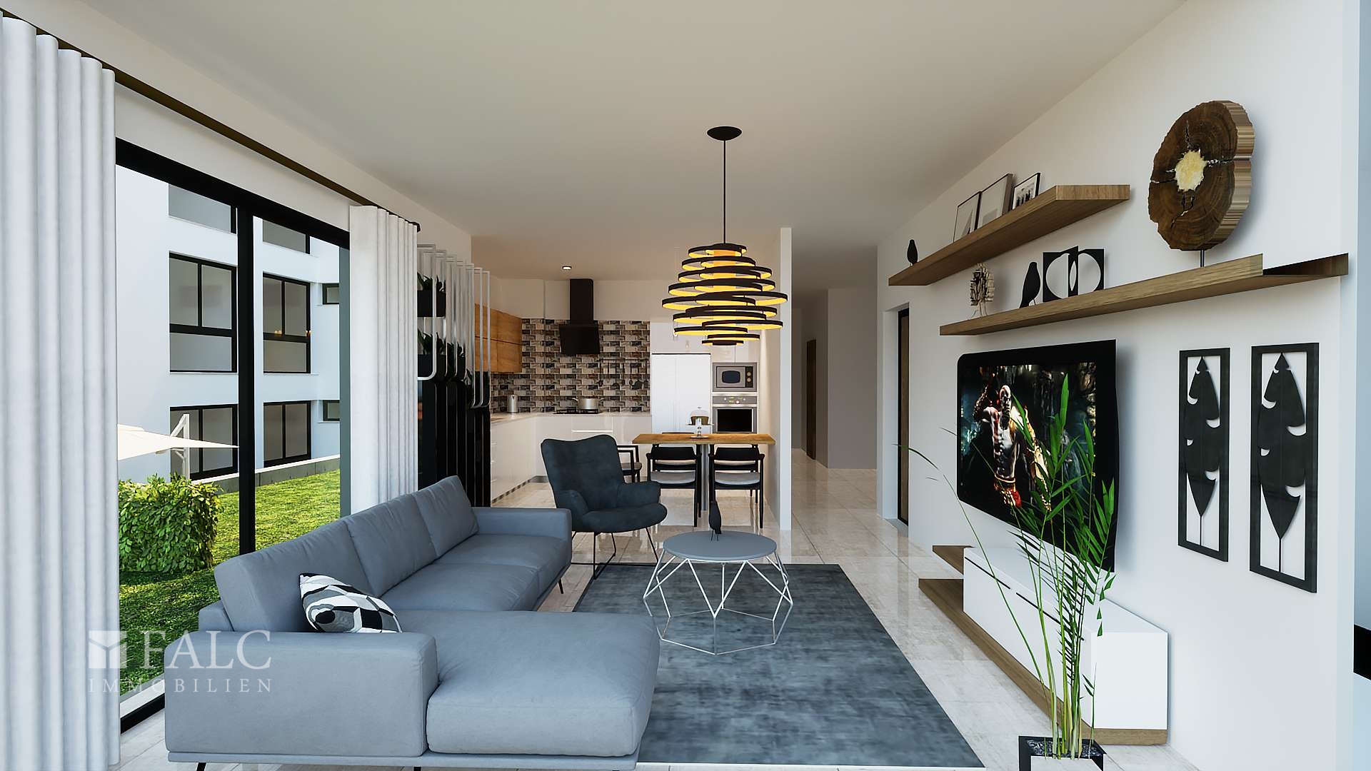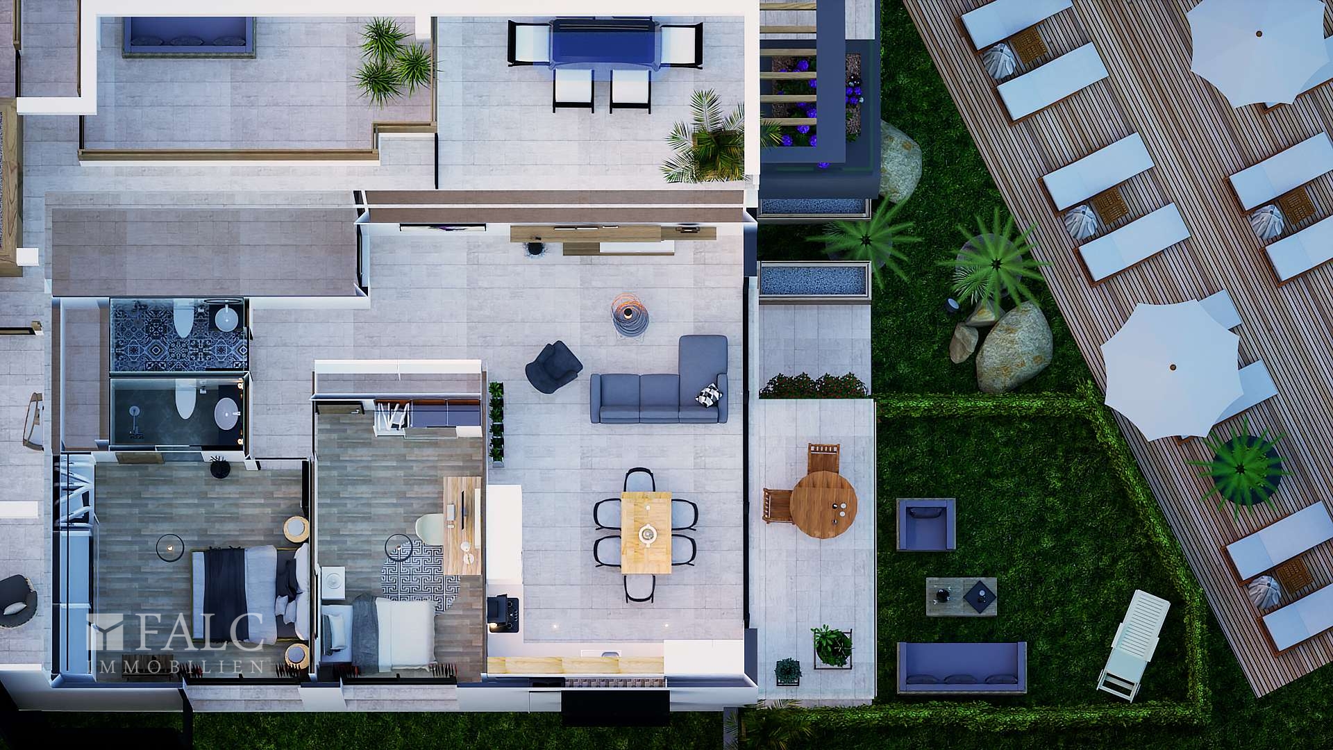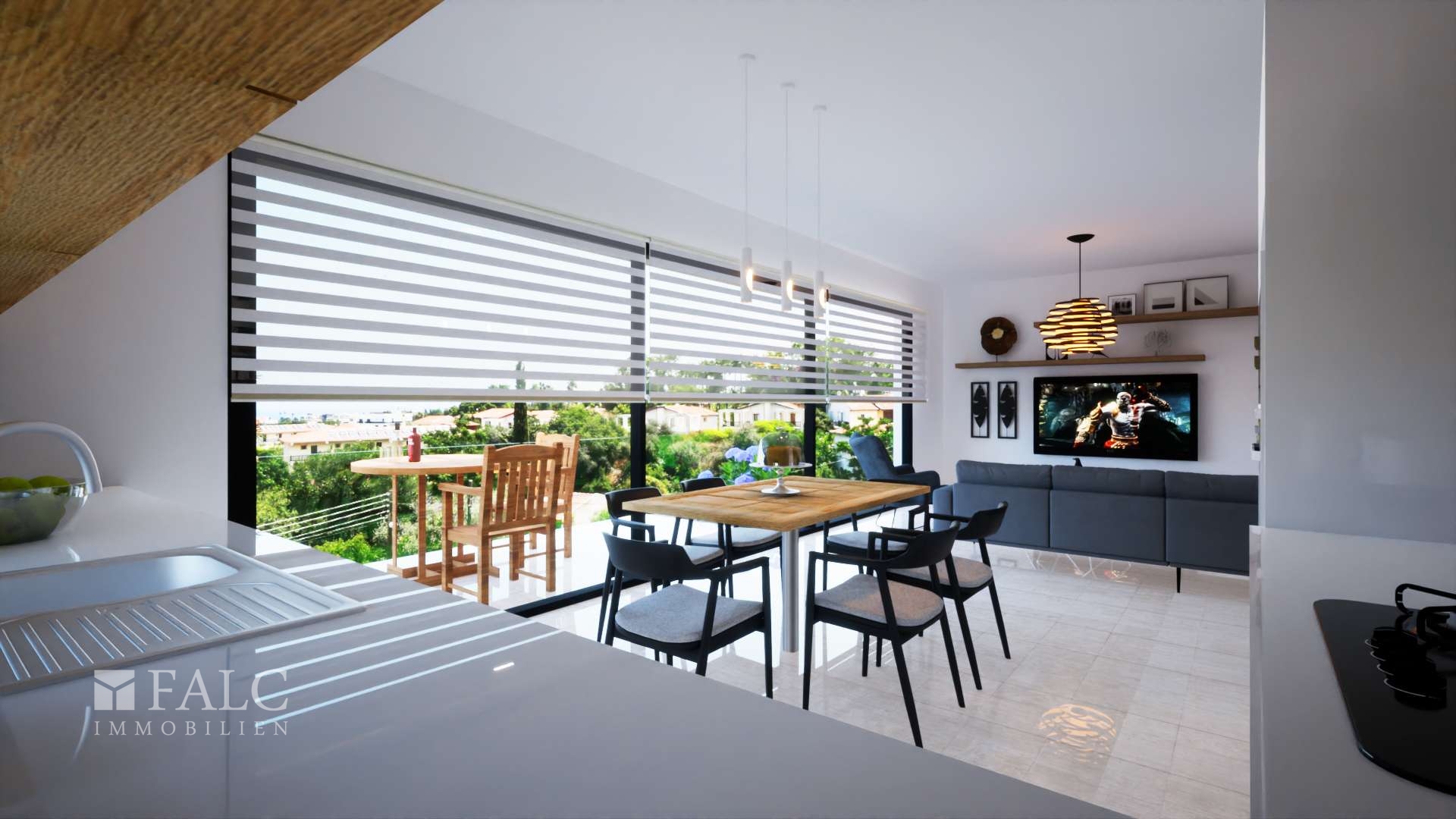 Die moderne Einbauküche ist bereits im Preis enthalten und lässt keine Wünsche offen. Die gesamte Wohnung ist klimatisiert und bietet somit angenehme Raumtemperaturen zu jeder Jahreszeit. Zusätzlich verfügt die Wohnung über eine Dachterrasse und einen Balkon, die zum Entspannen und Genießen einladen.